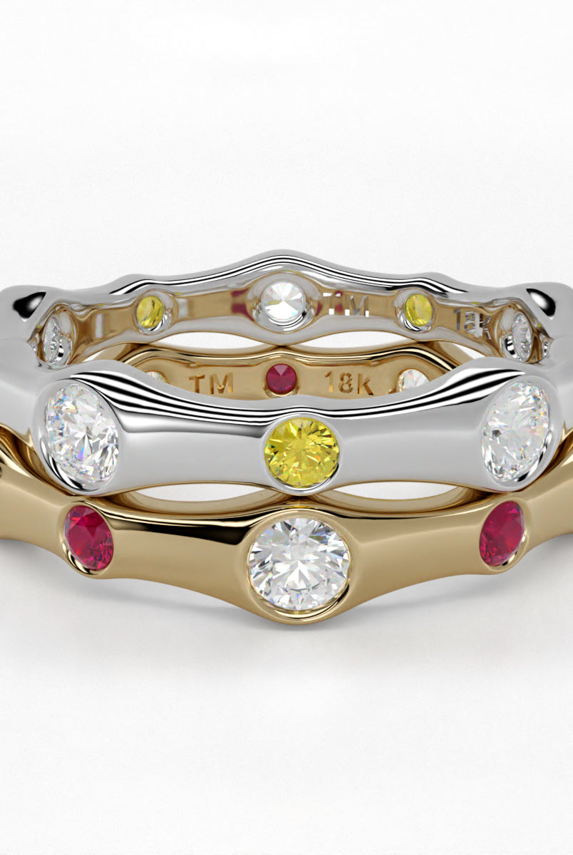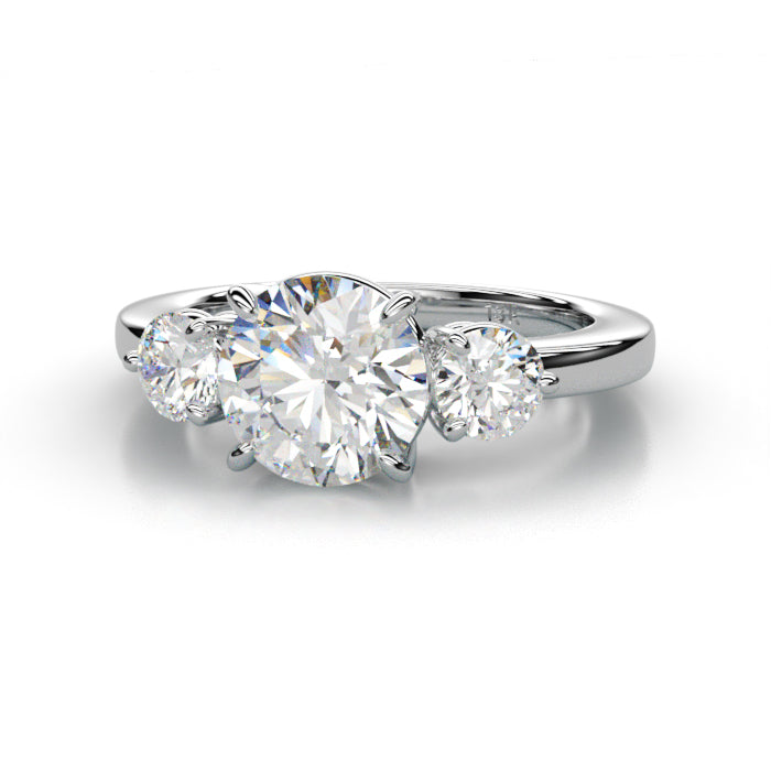 Our three stone rings are designed for balance and beauty. Every stone is hand picked to accentuate and enhance the center Diamond. We pride ourselves on attention to detail and every setting allows for maximum light return and timeless elegance.