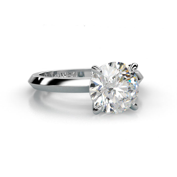 Our new solitaire designs are set with sleek prongs, giving these modern classic settings beautiful clean lines with a contemporary feel. Using elegant profiles and a slender band, it gives these new designs a romantic and classical sensibility.