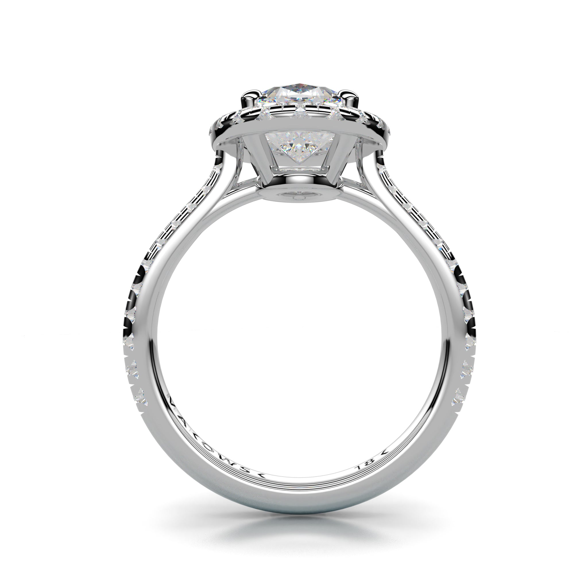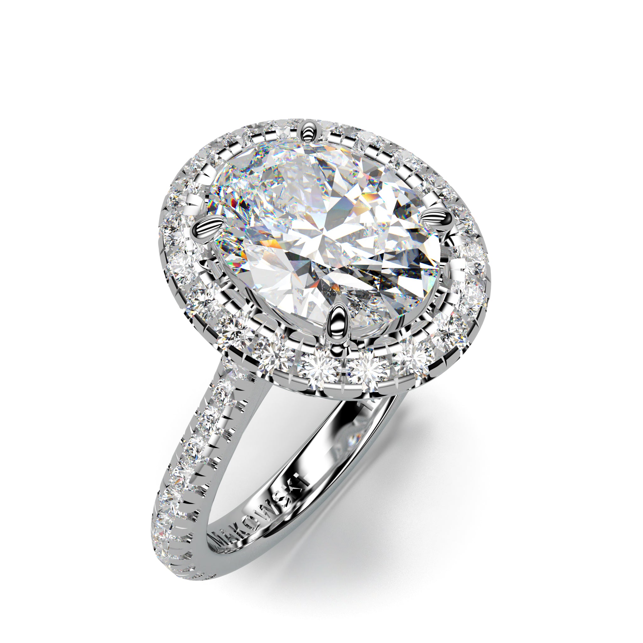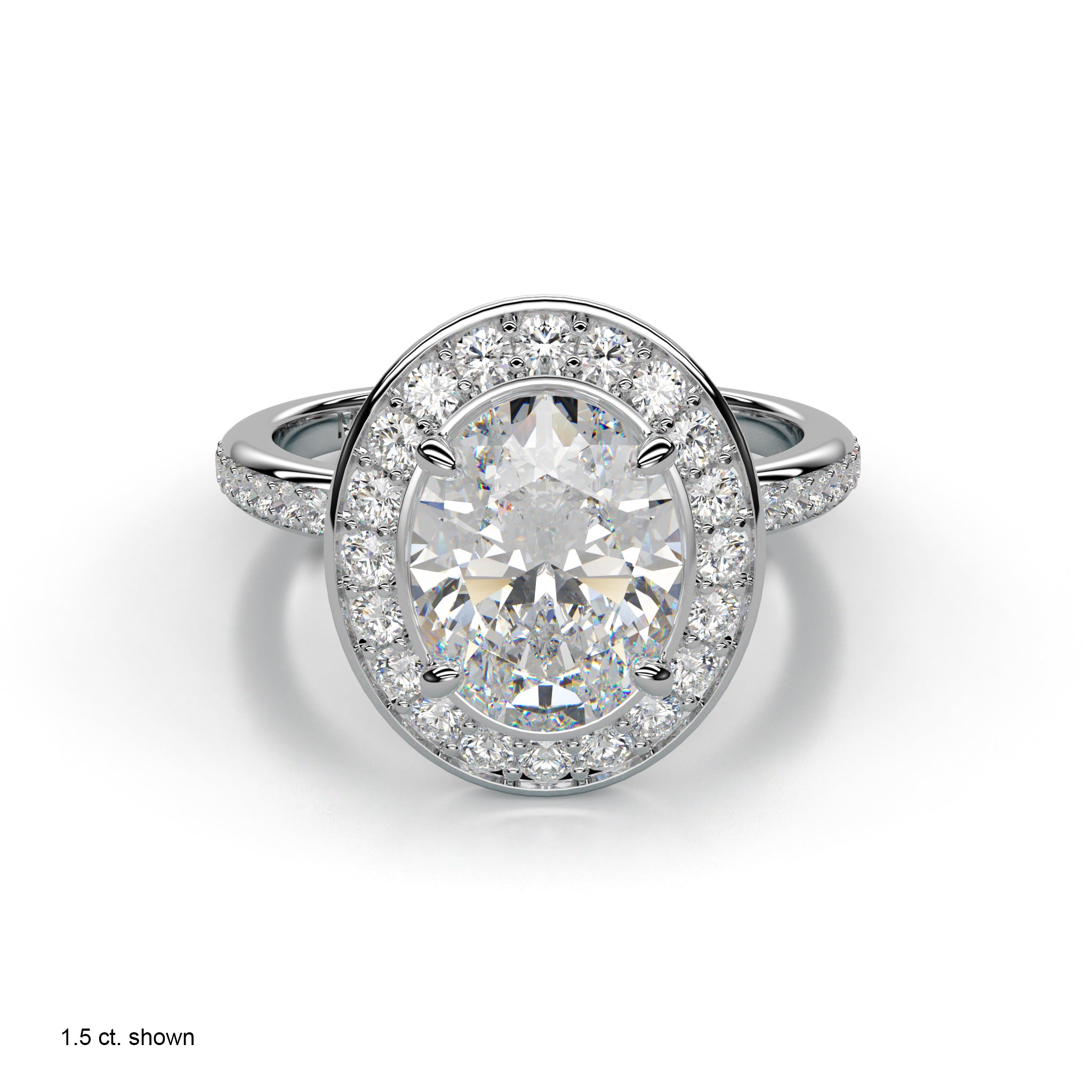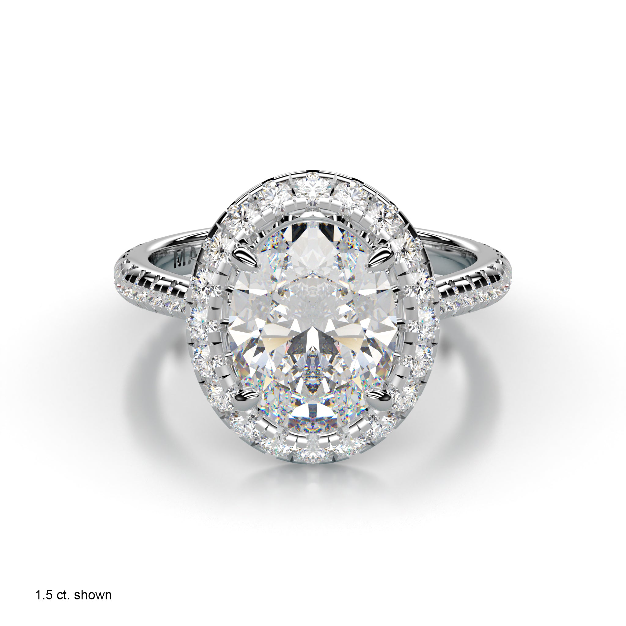 Oval in Prong Set Halo with Prong set Accents on the shank