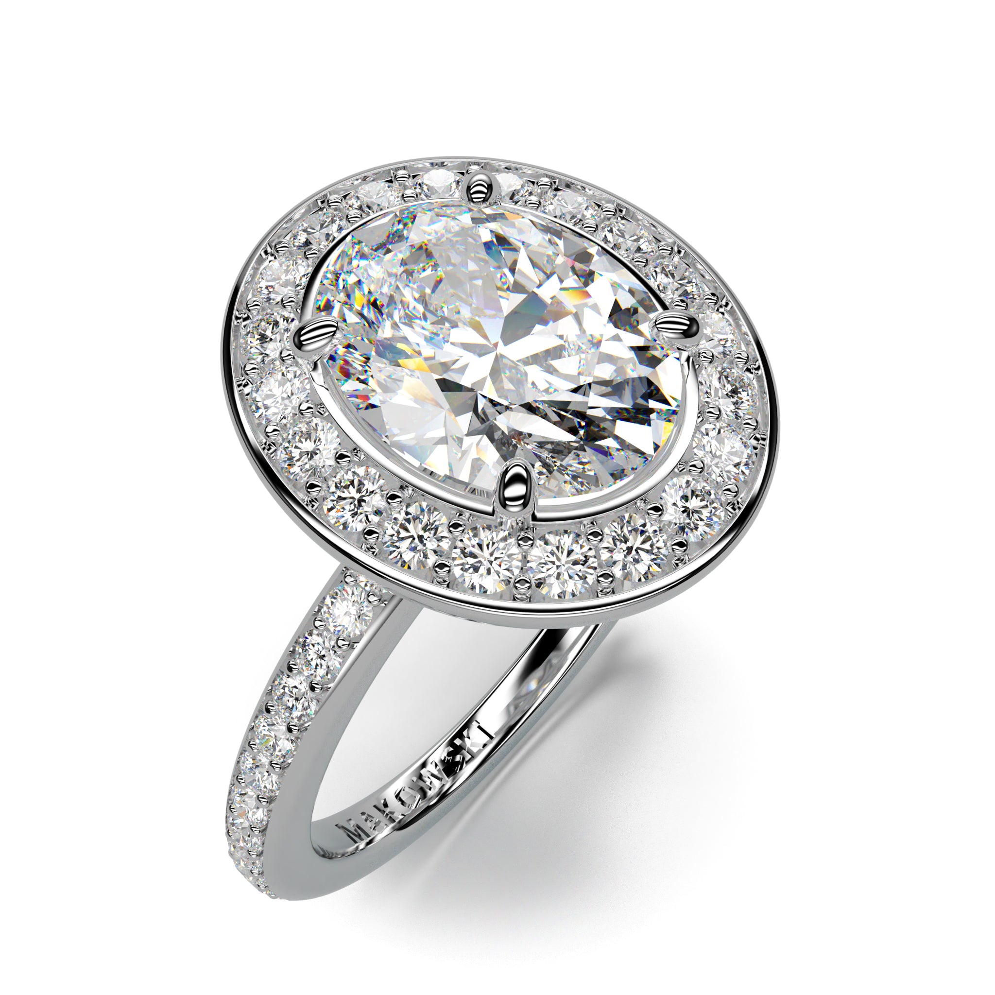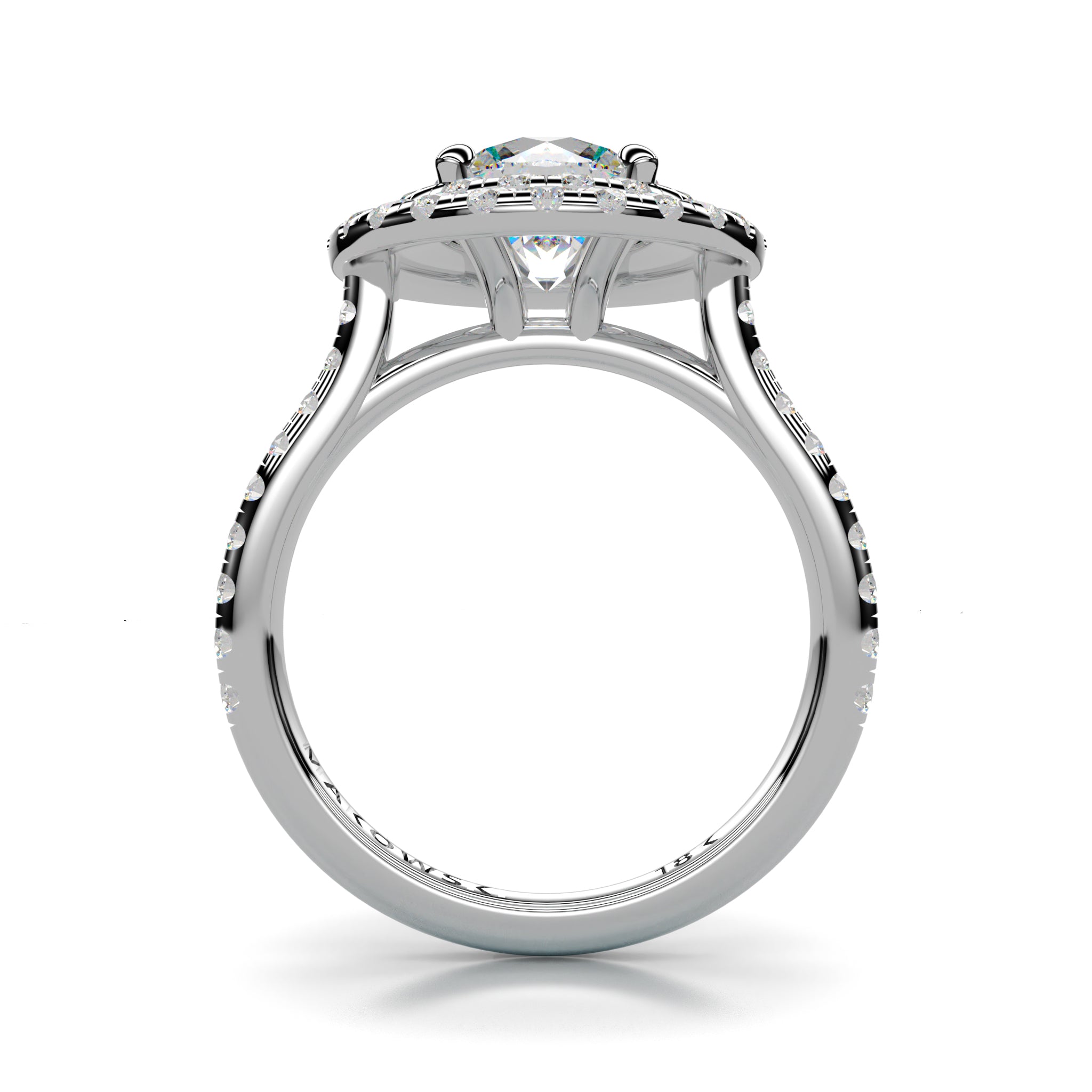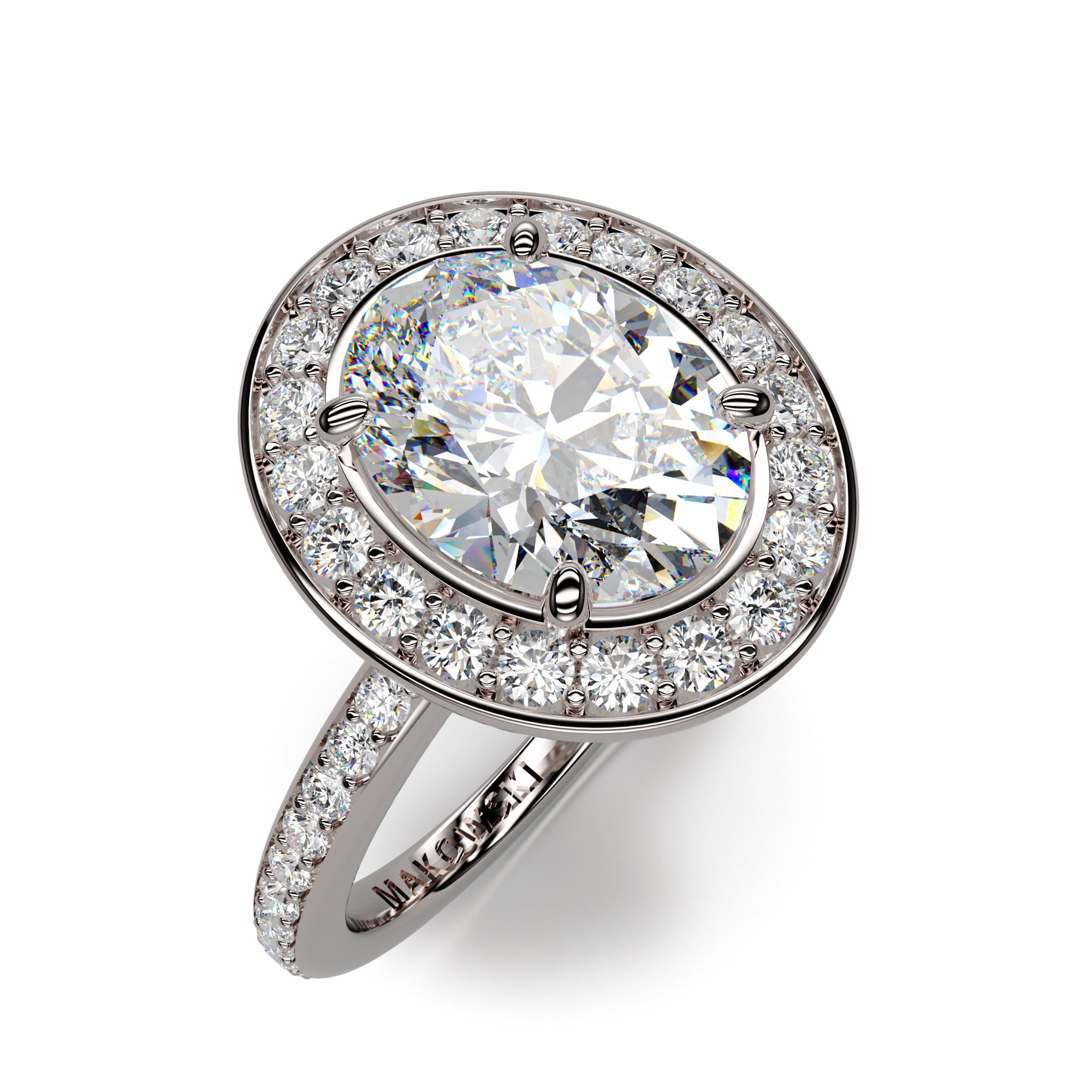 Oval in Prong Set Halo with Prong set Accents on the shank