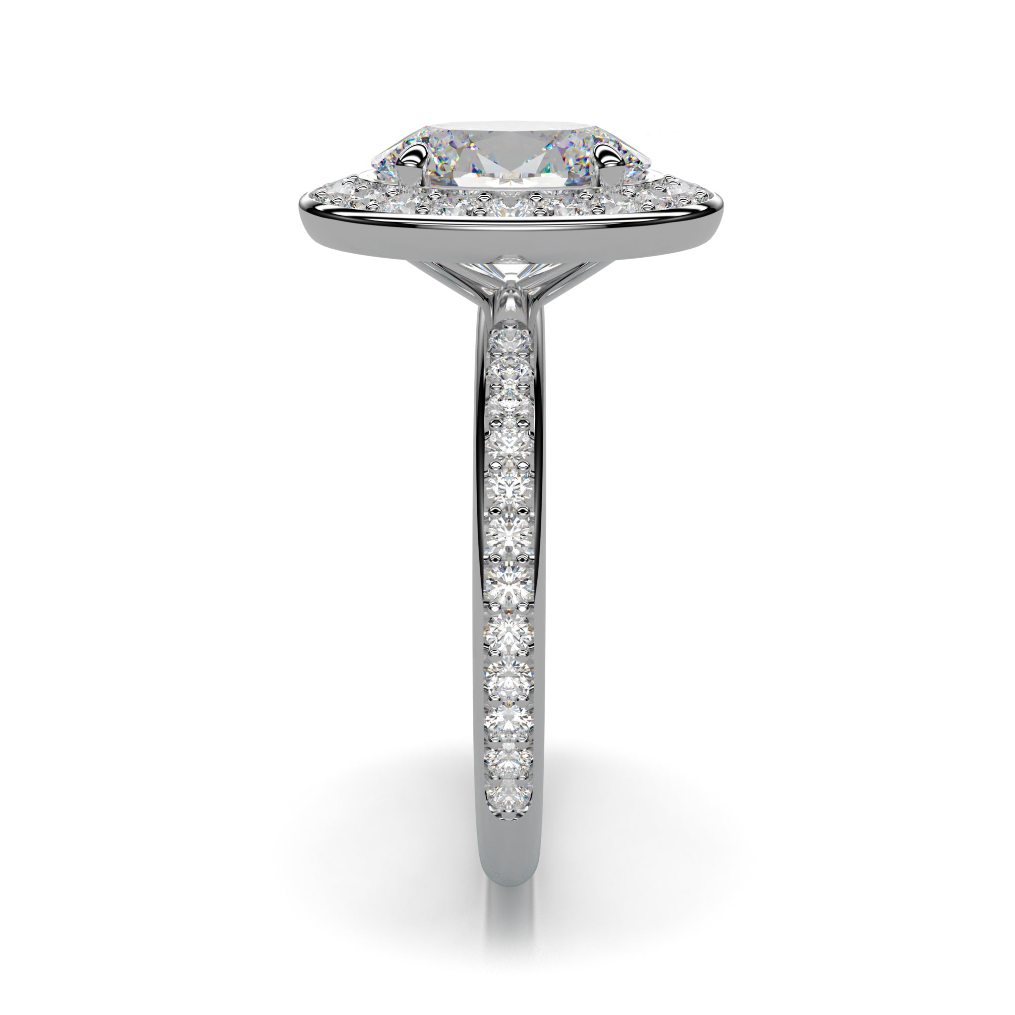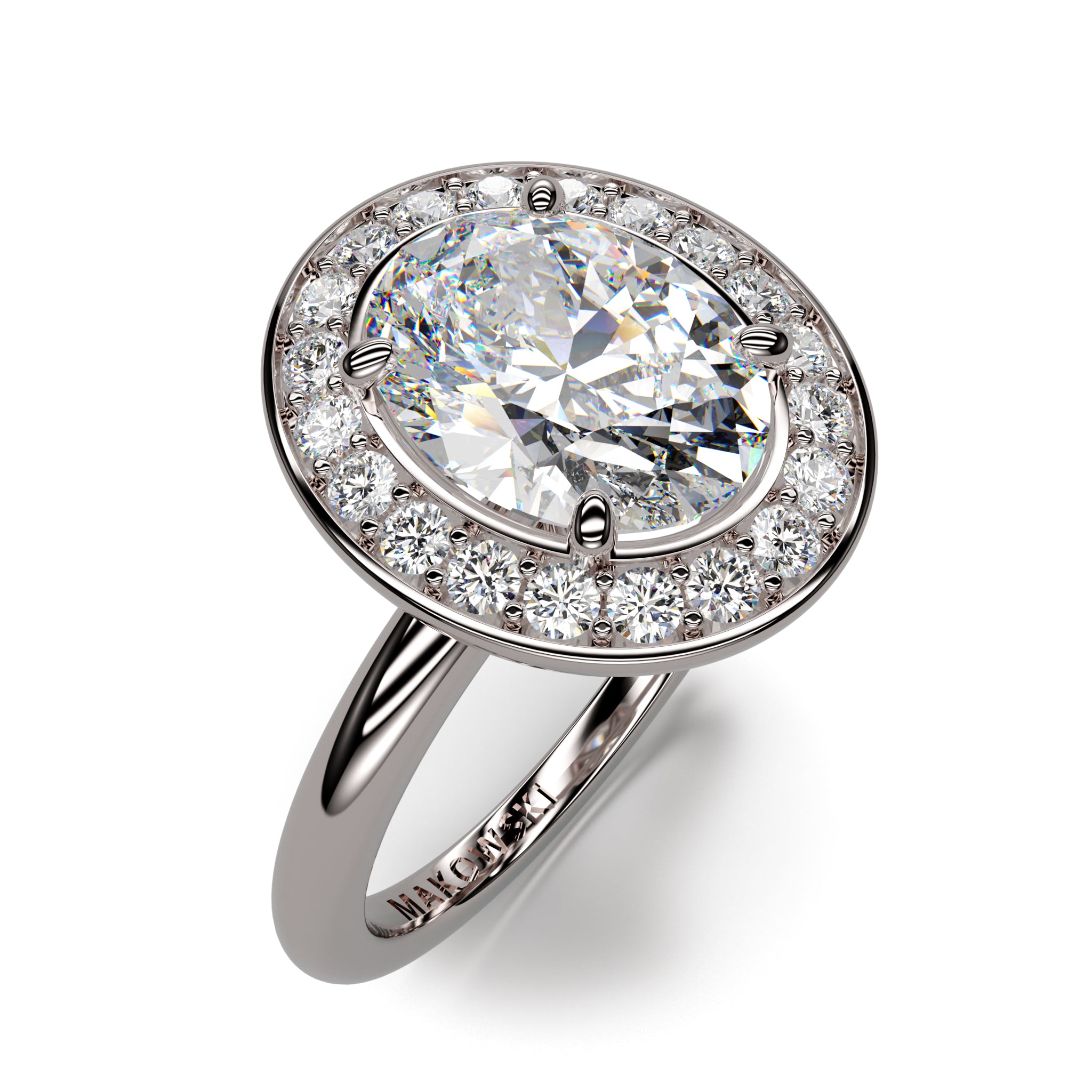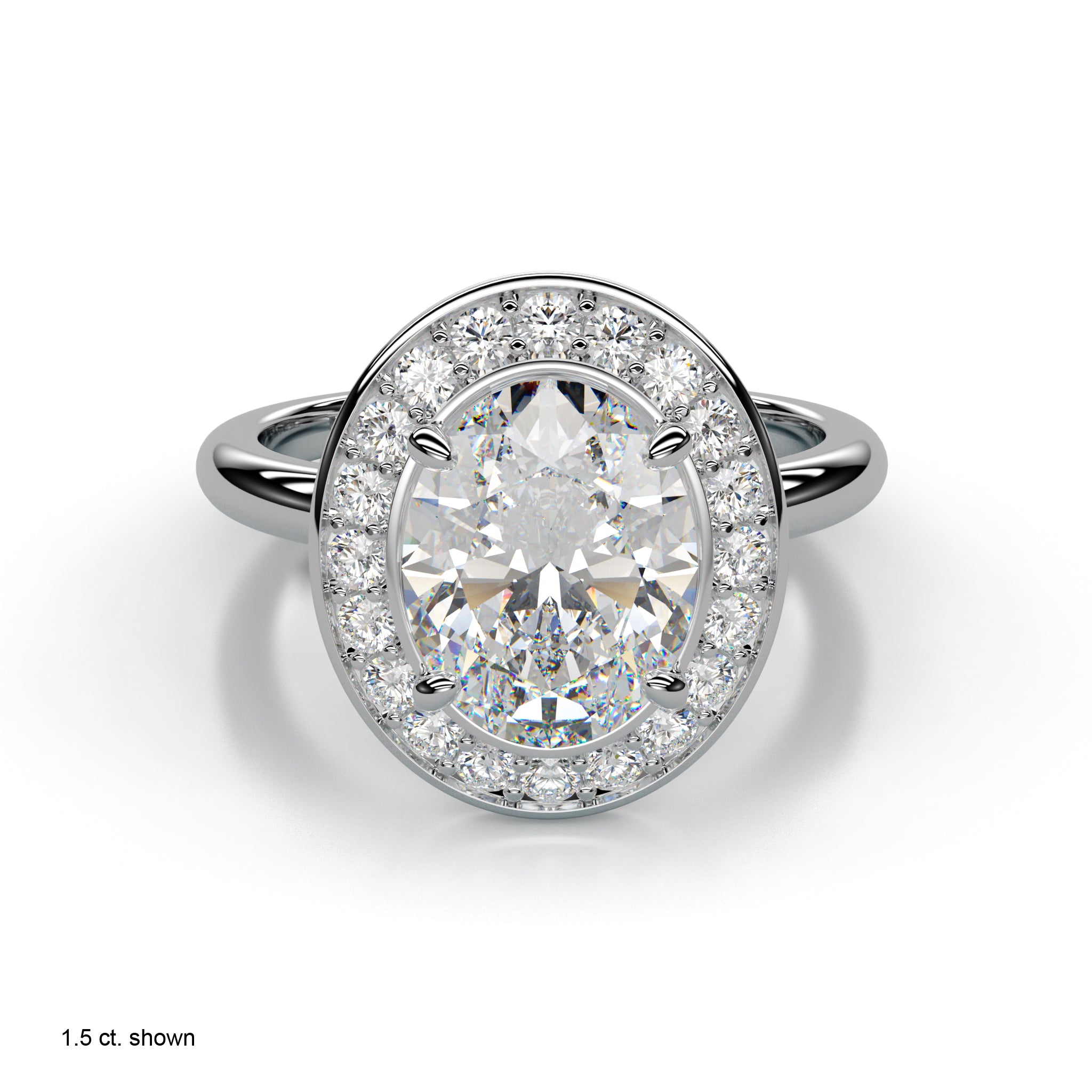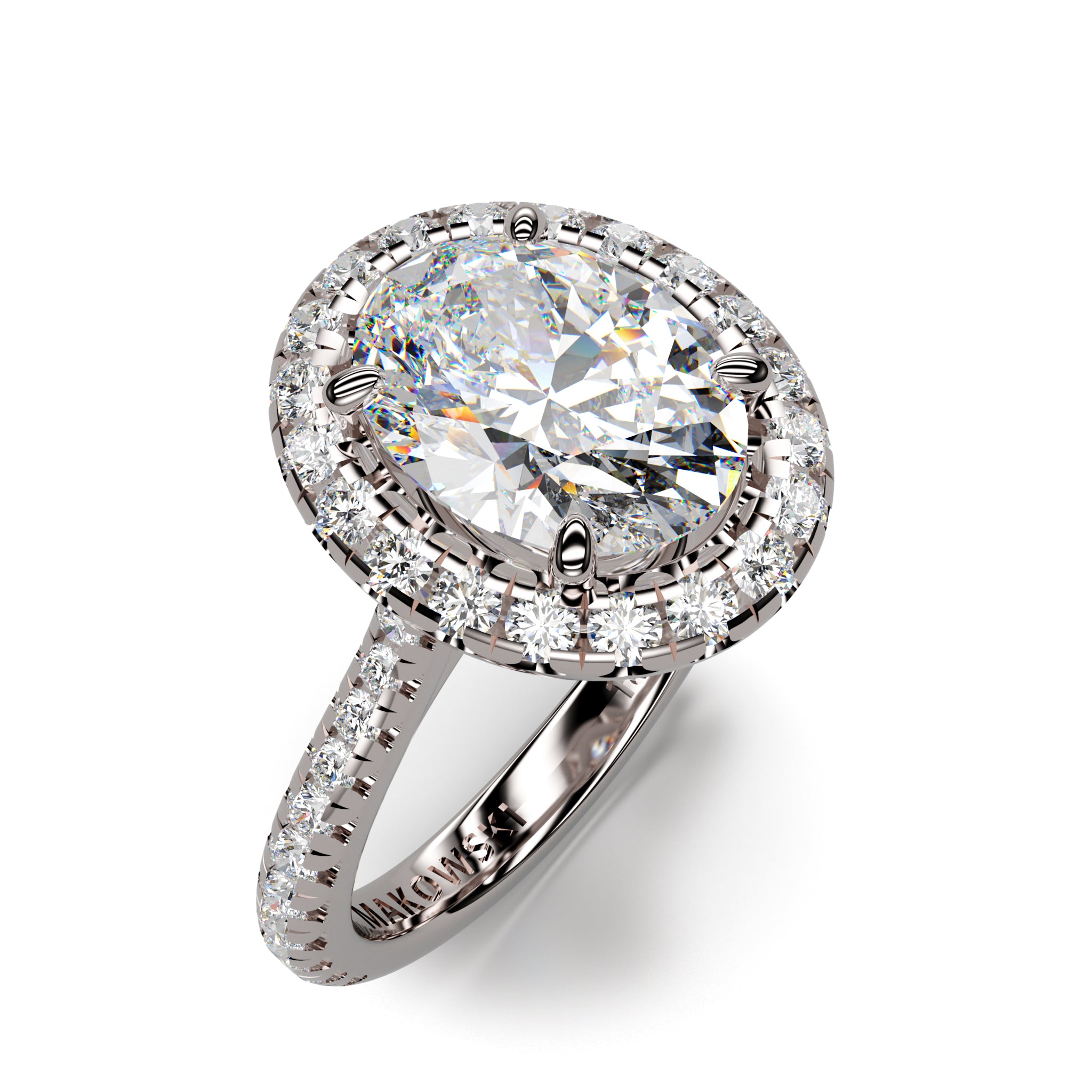 Oval in Prong Set Halo with Prong set Accents on the shank