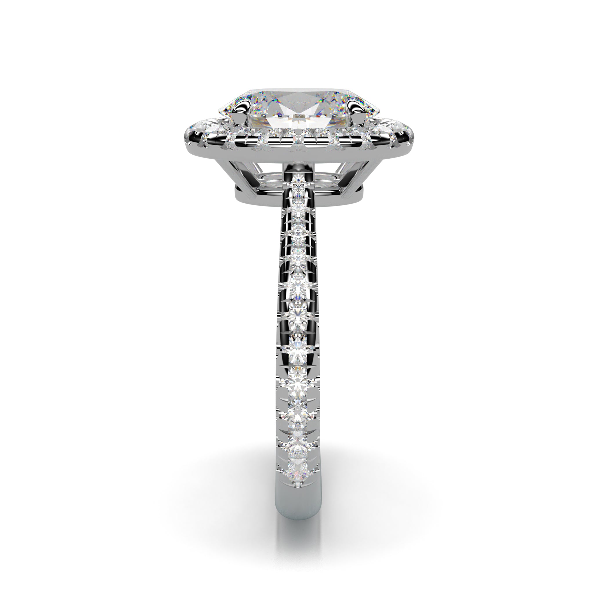 Cushion Cut 4 Prong Set Halo with Prong Set Fully Accented Shank