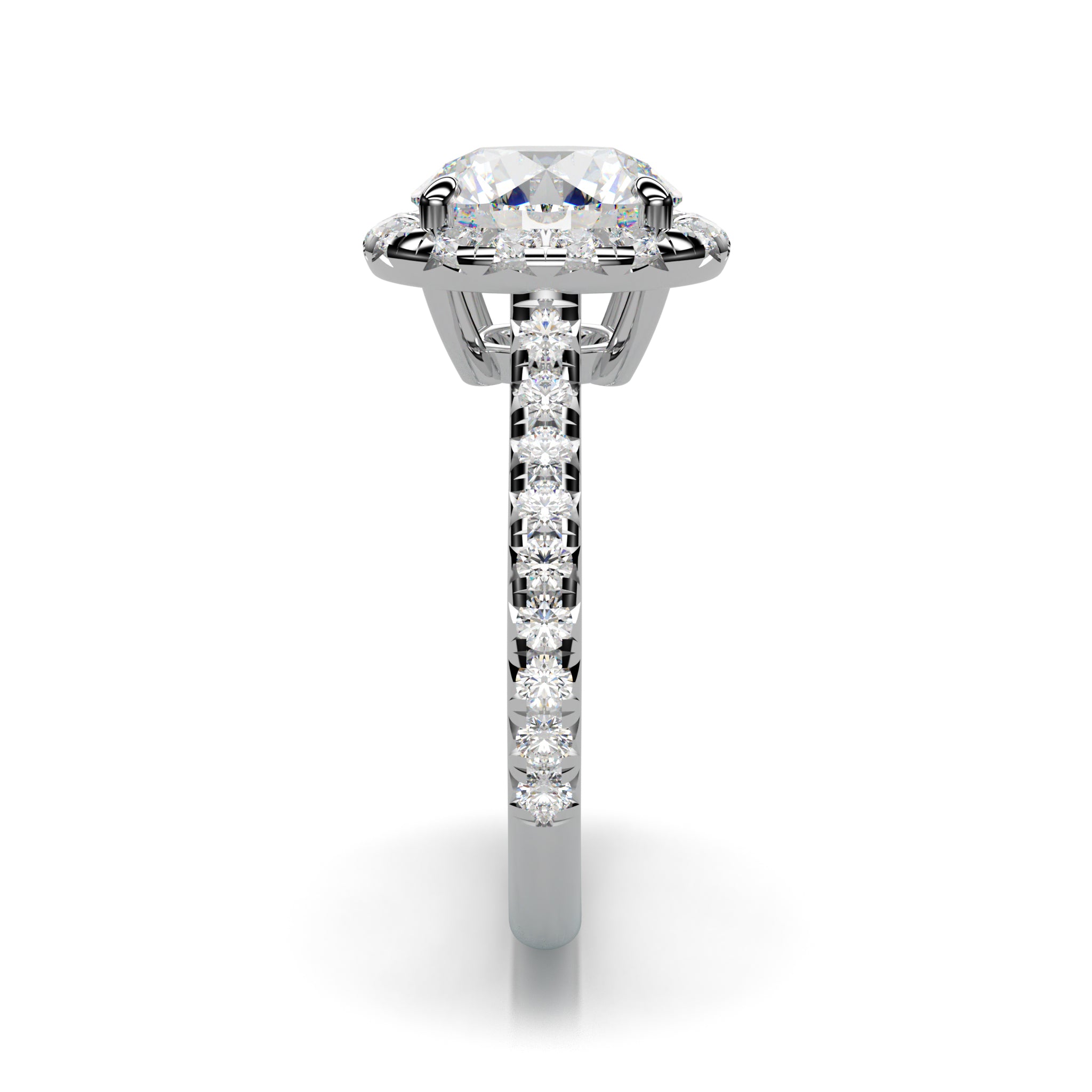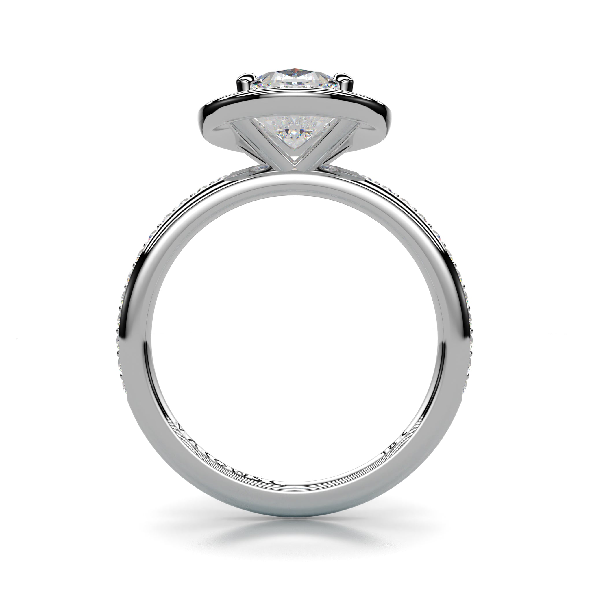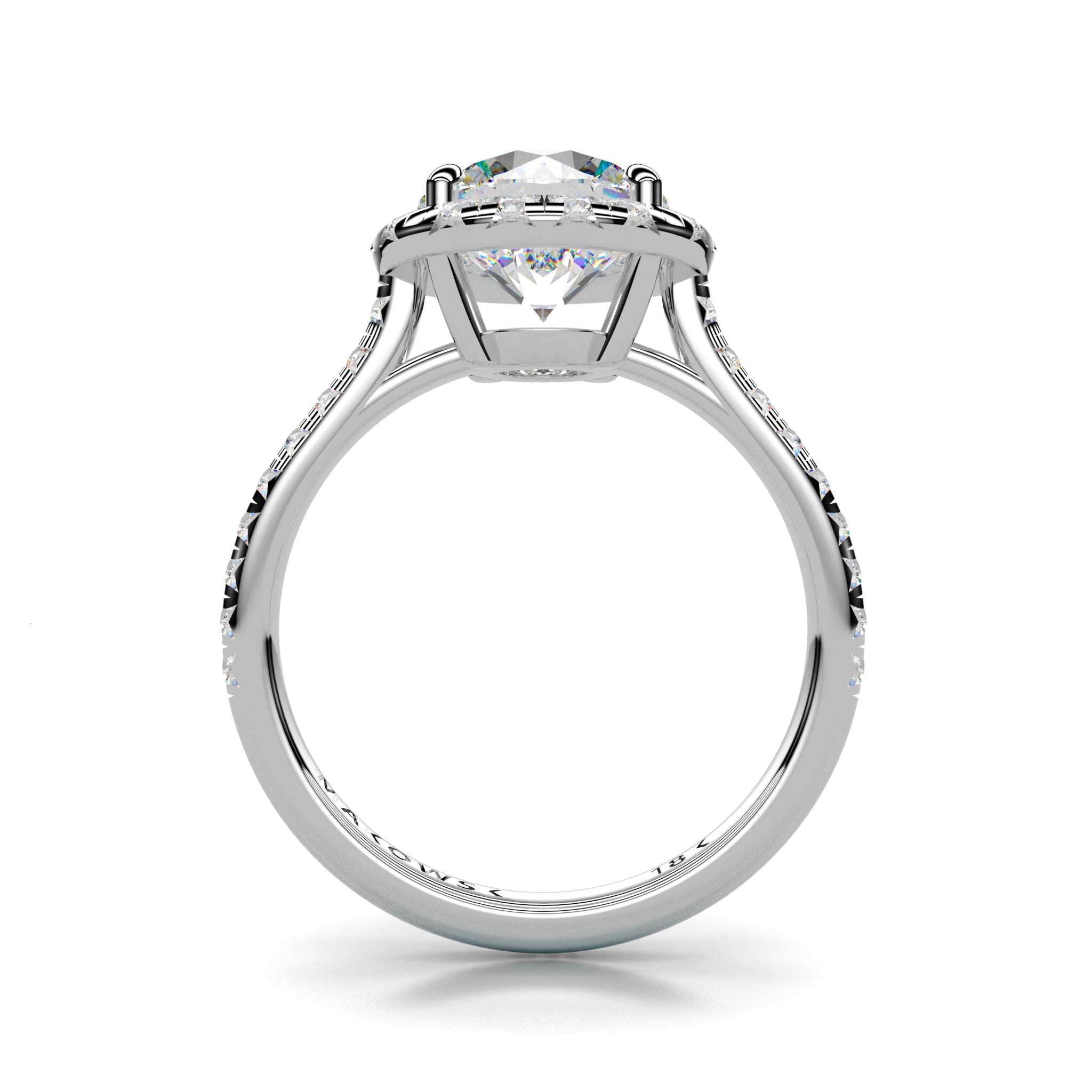 French Set Halo in 4 Prong Setting with Graduated Accented French Set Shank