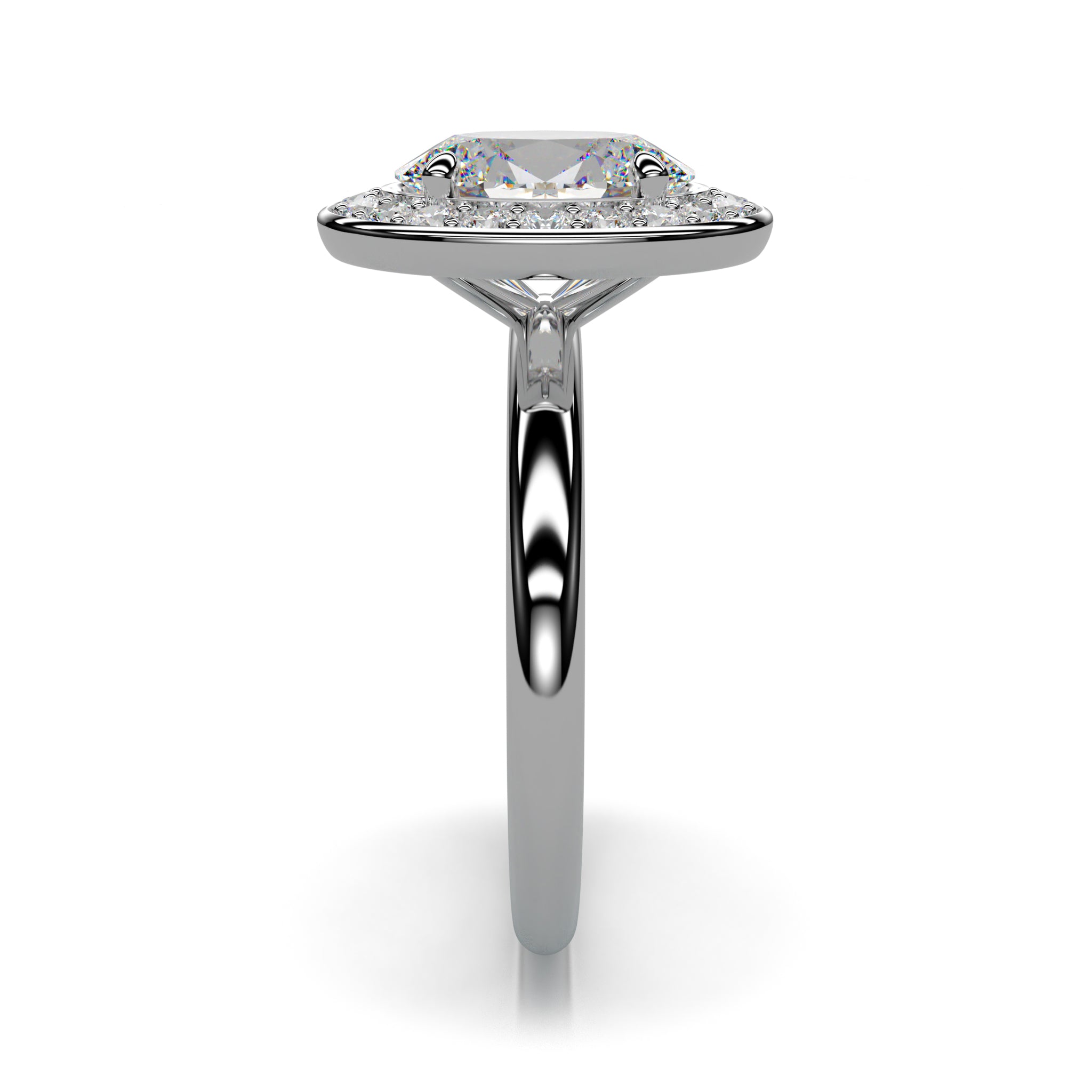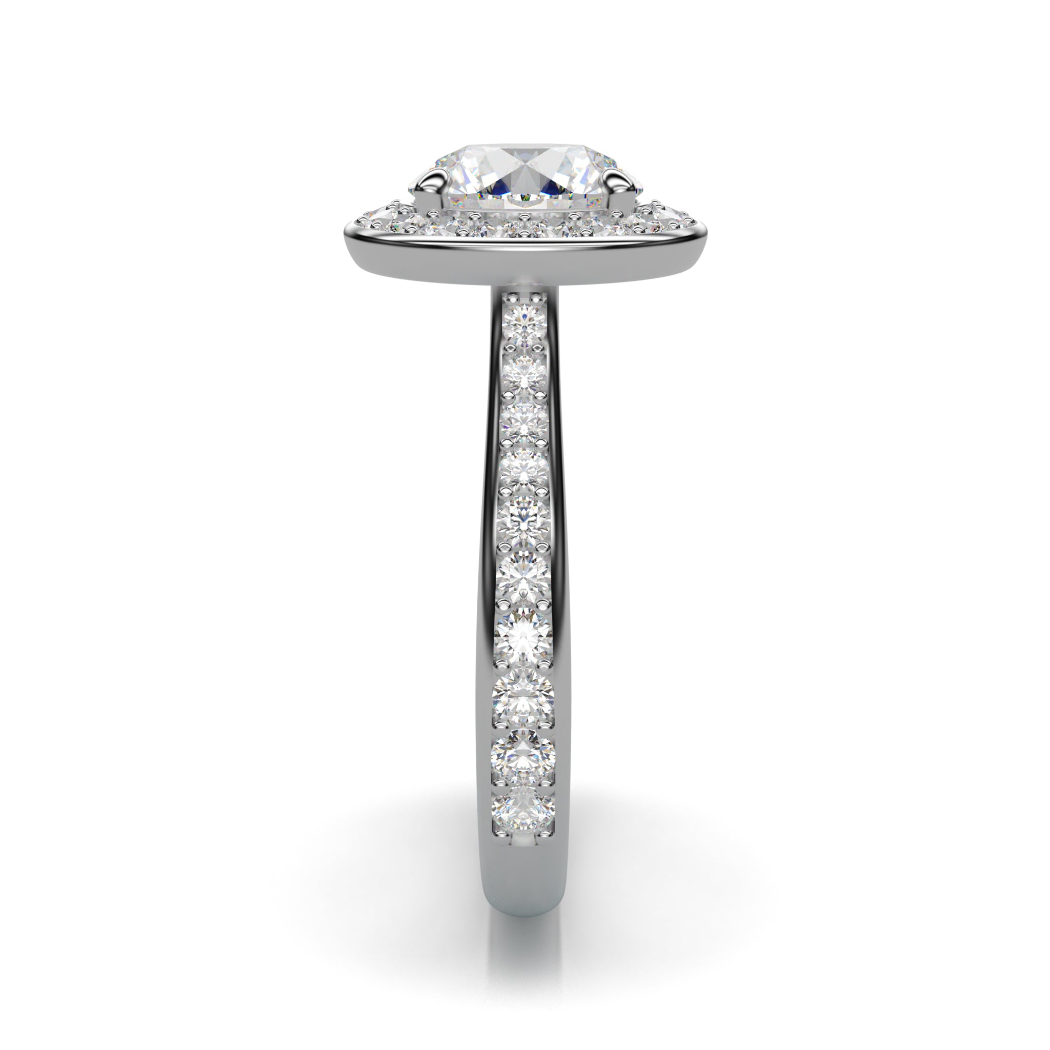 Oval Diamond with a Prong set Channel Halo on a Half Round Profile Band