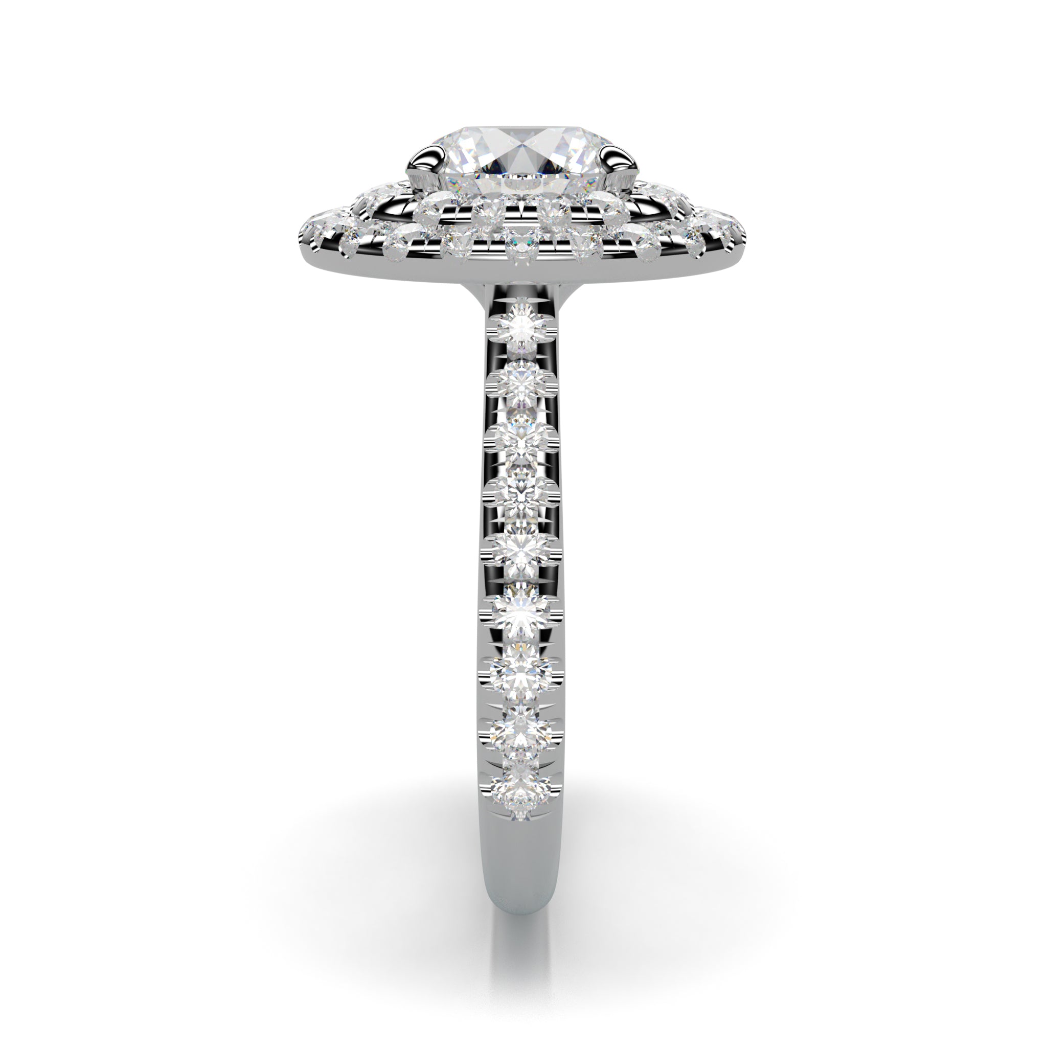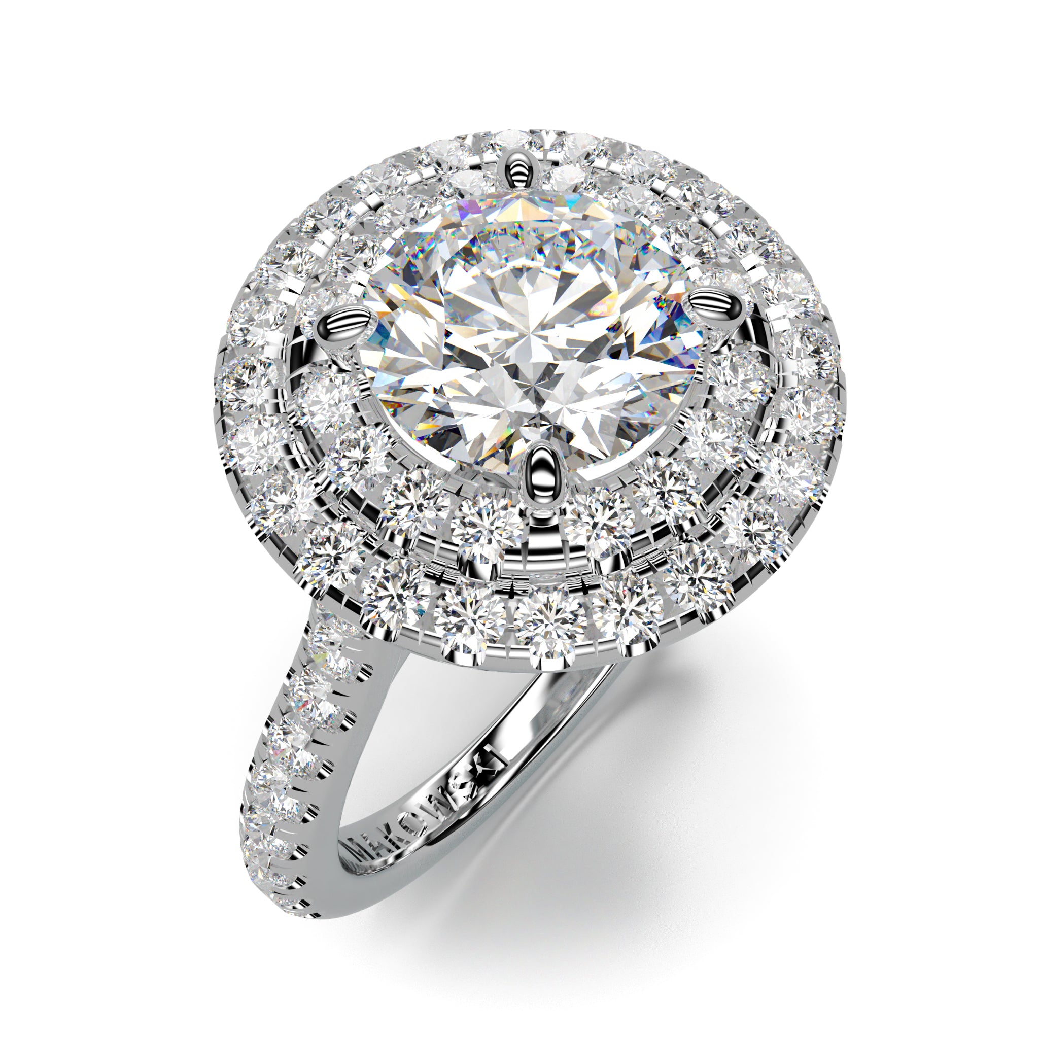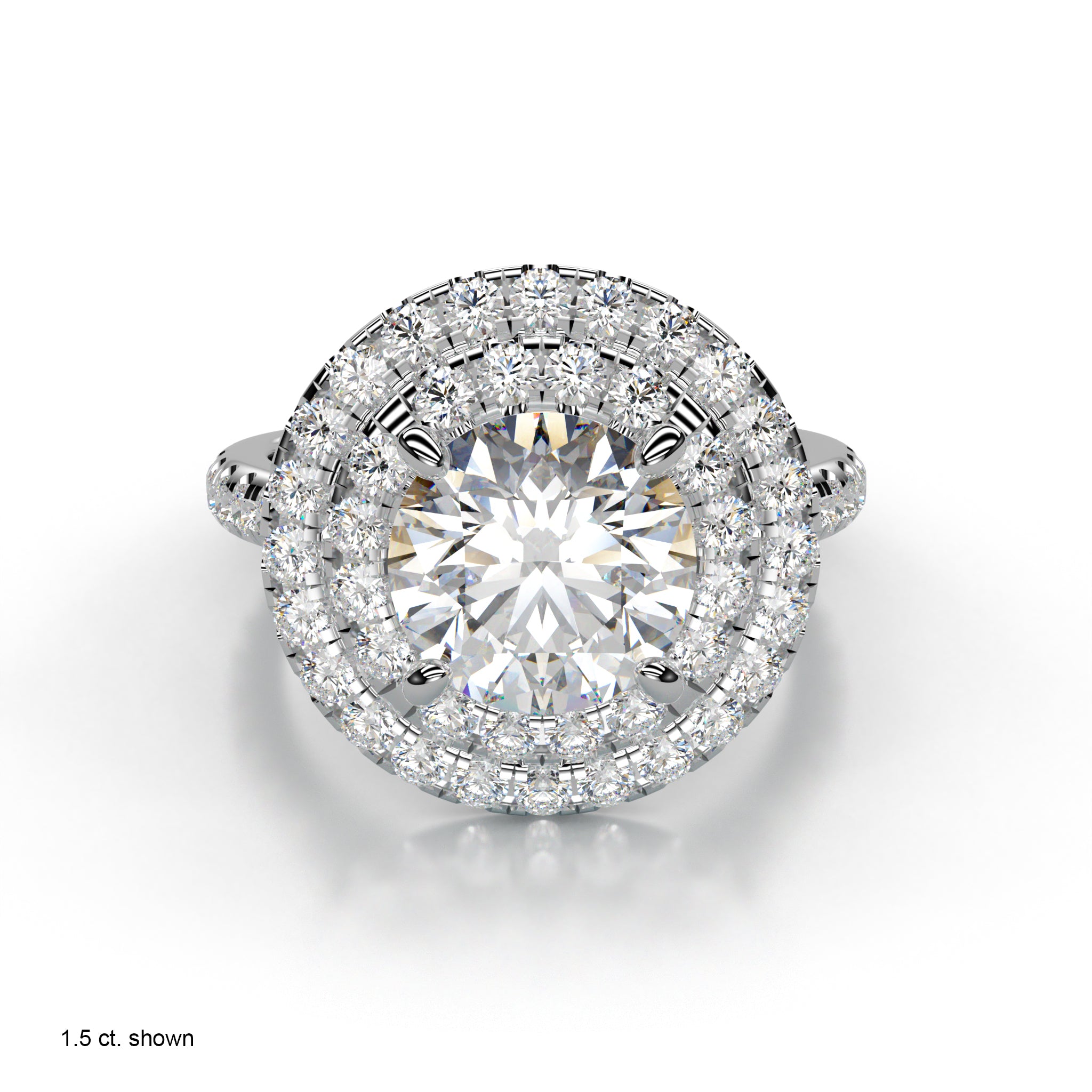Round Brilliant Double Halo Engagement Ring with Accented Shank