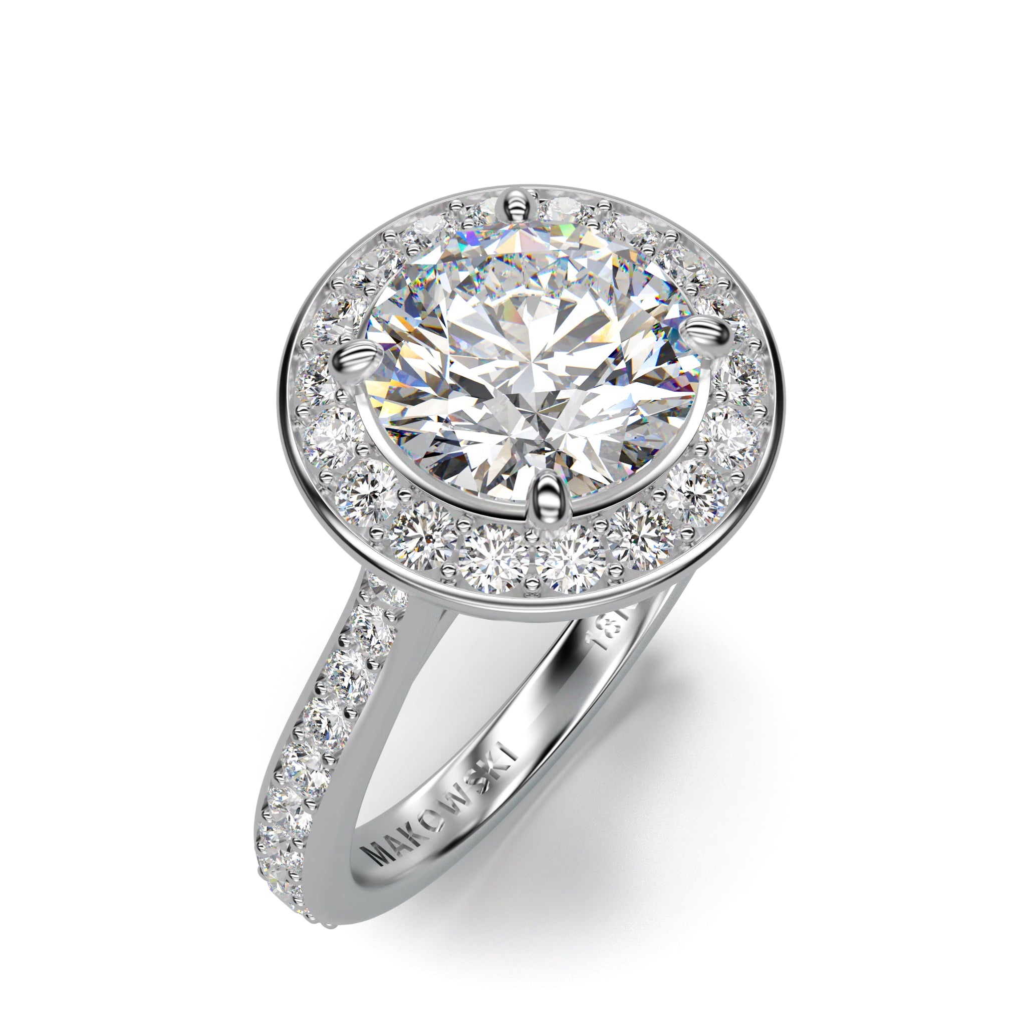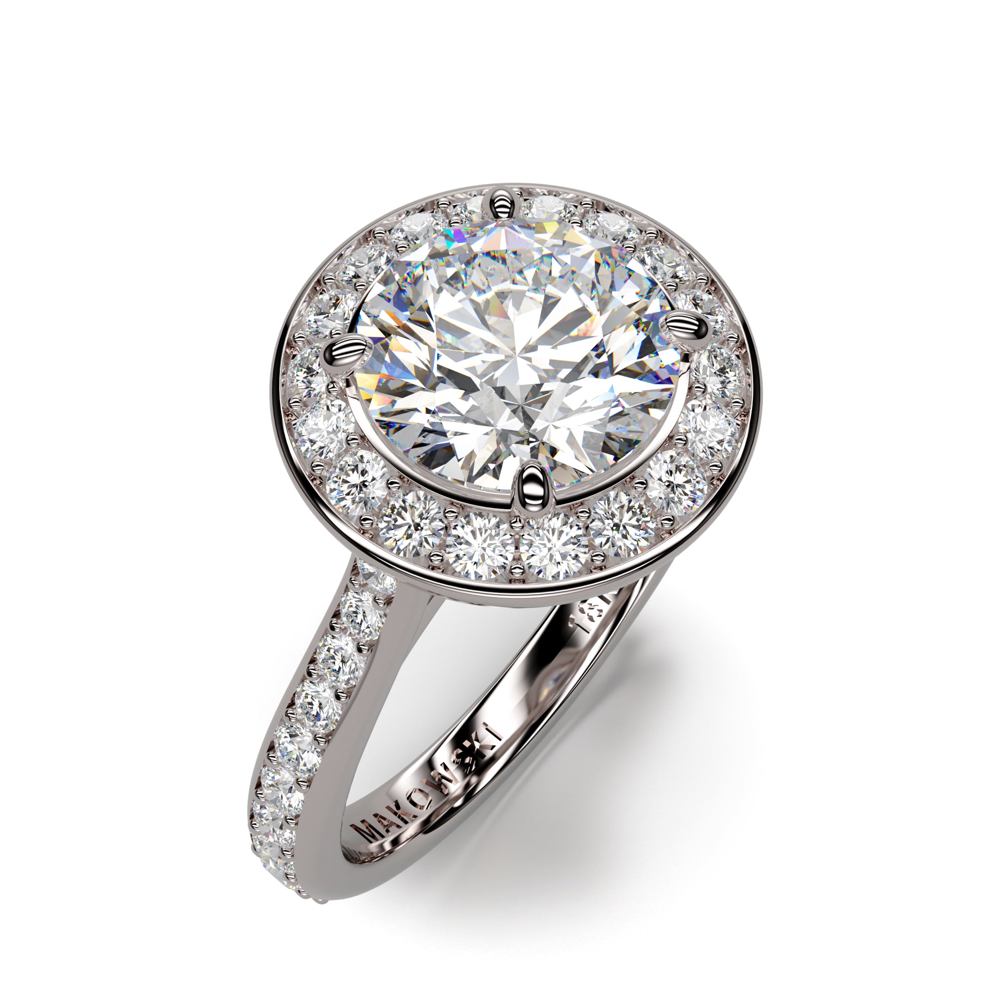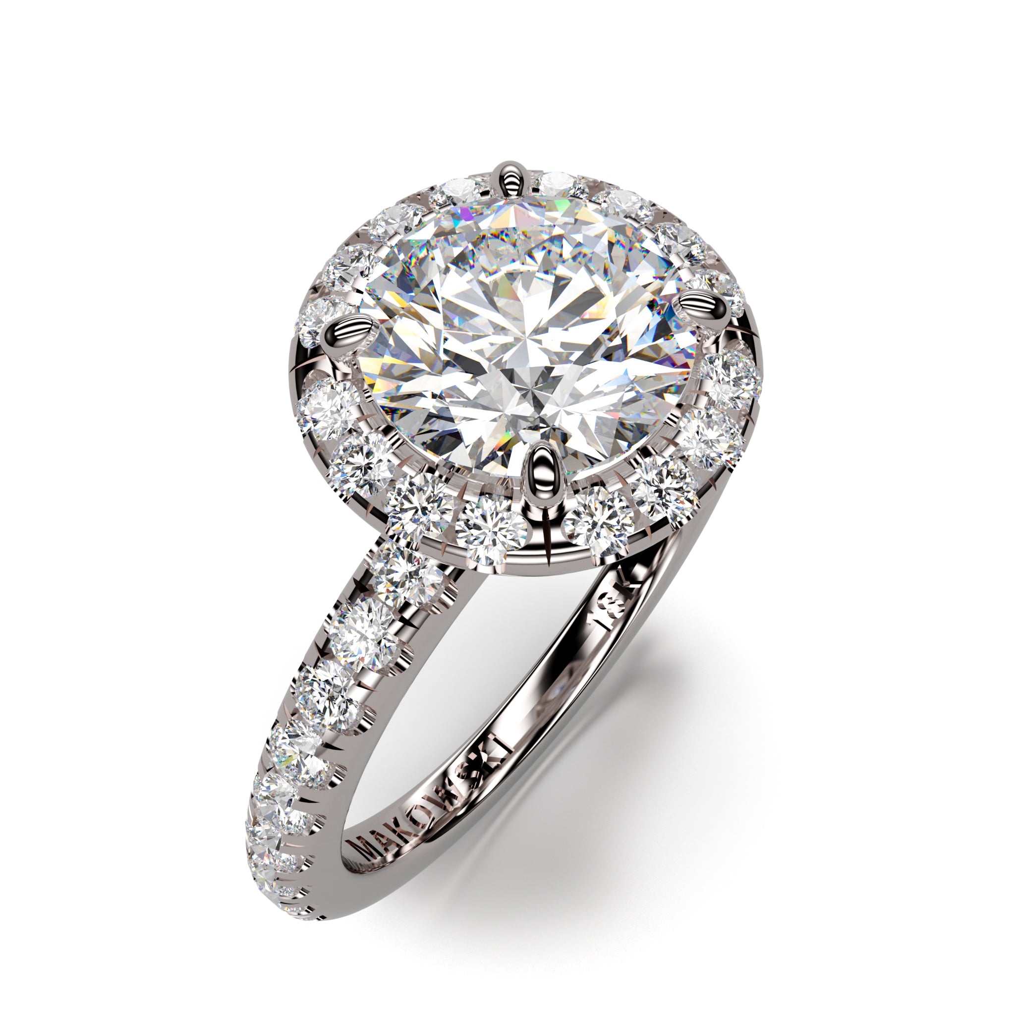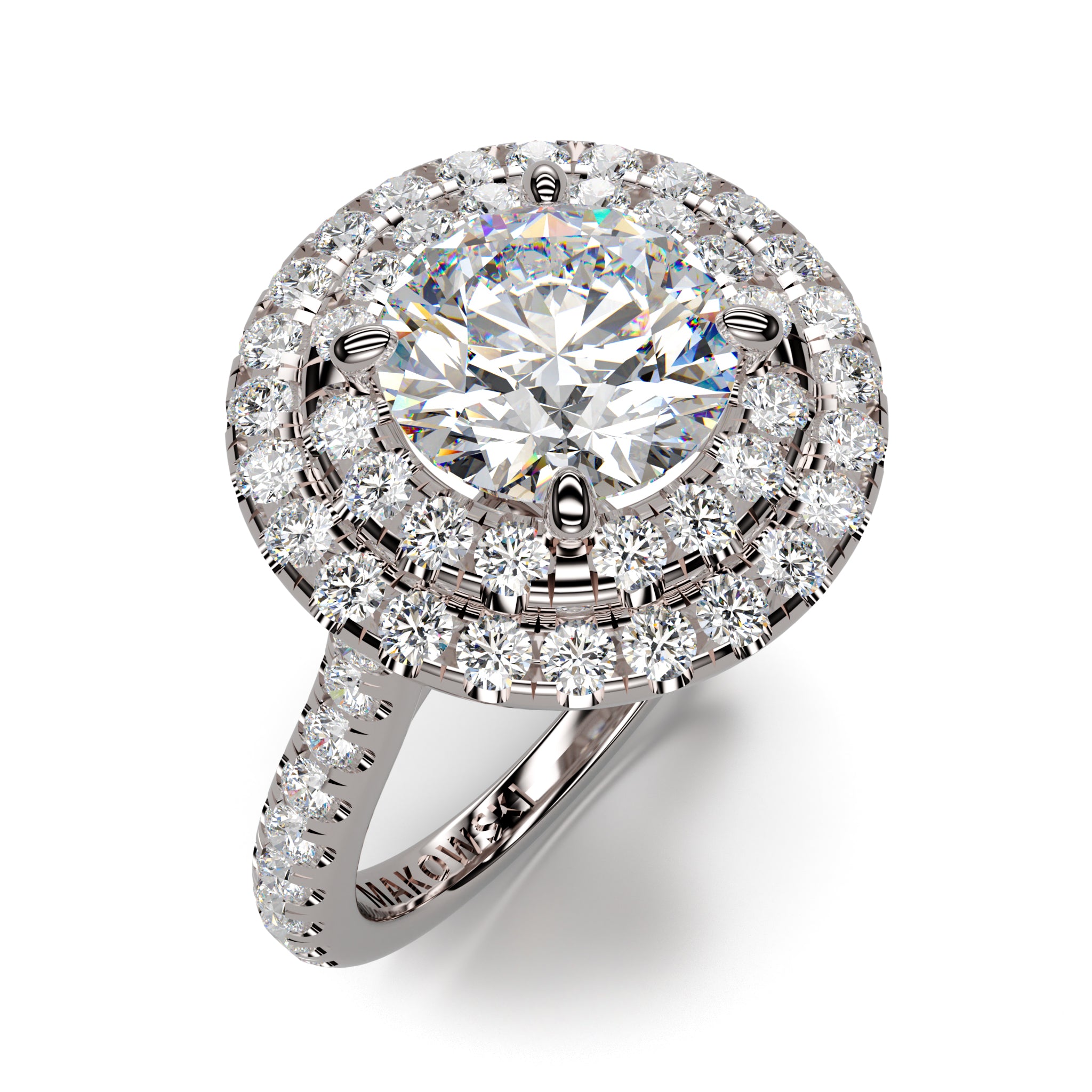 Round Brilliant Double Halo Engagement Ring with Accented Shank