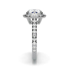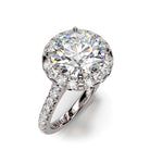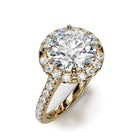 Round Brilliant Cathedral Fishtail Set Halo in 4 Prong Setting with Accented Fishtail Set Shank