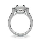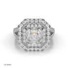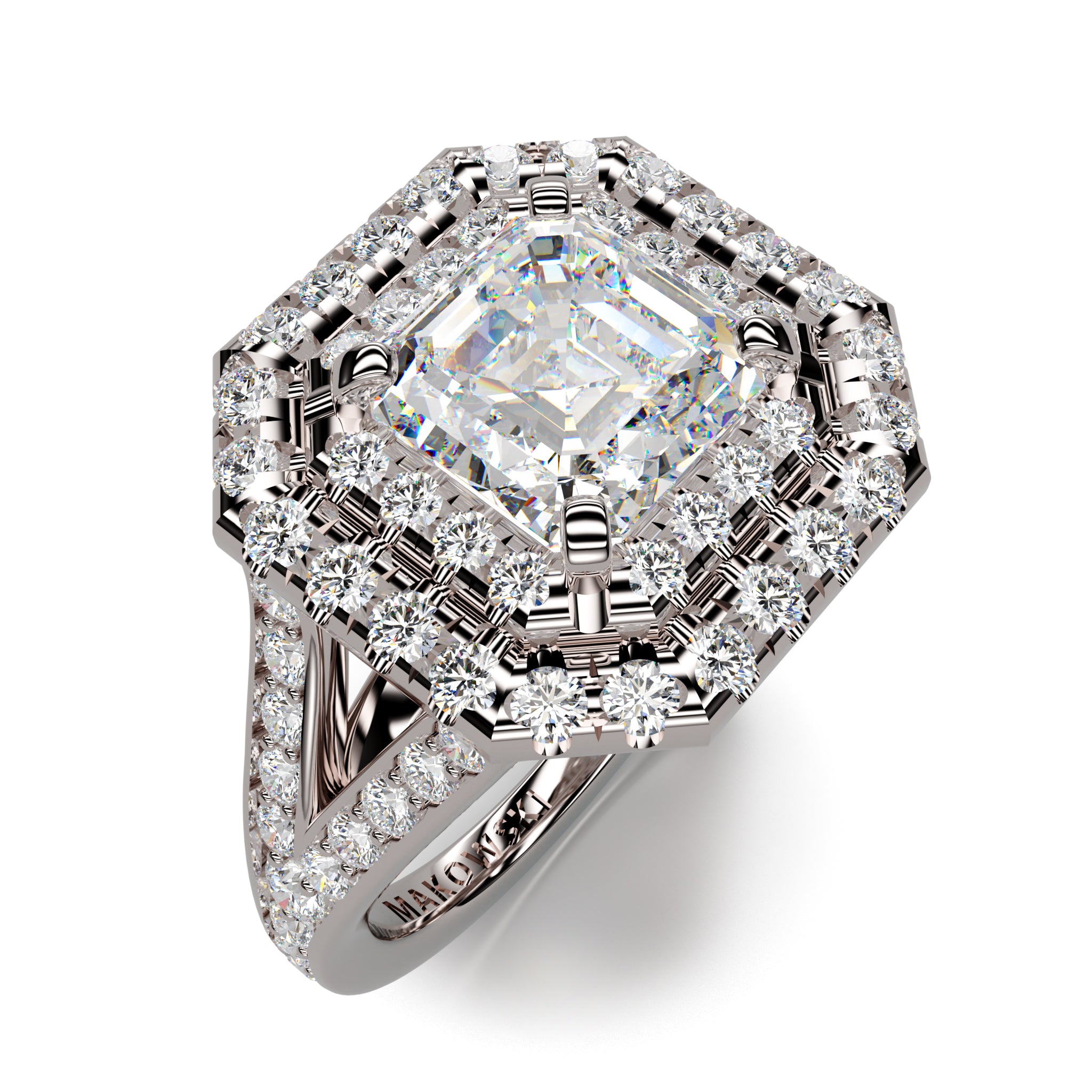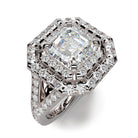 Square Diamond Engagement Ring With a Double Halo Setting and Accented Band
