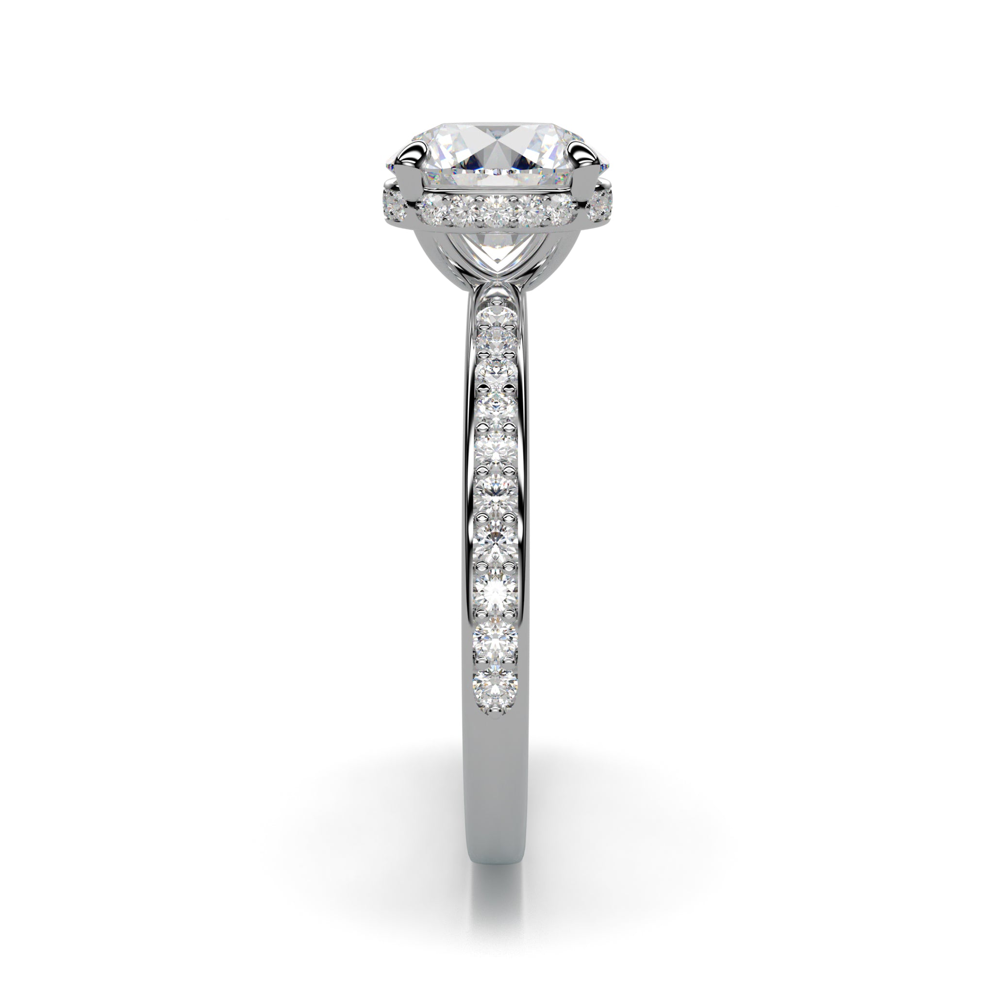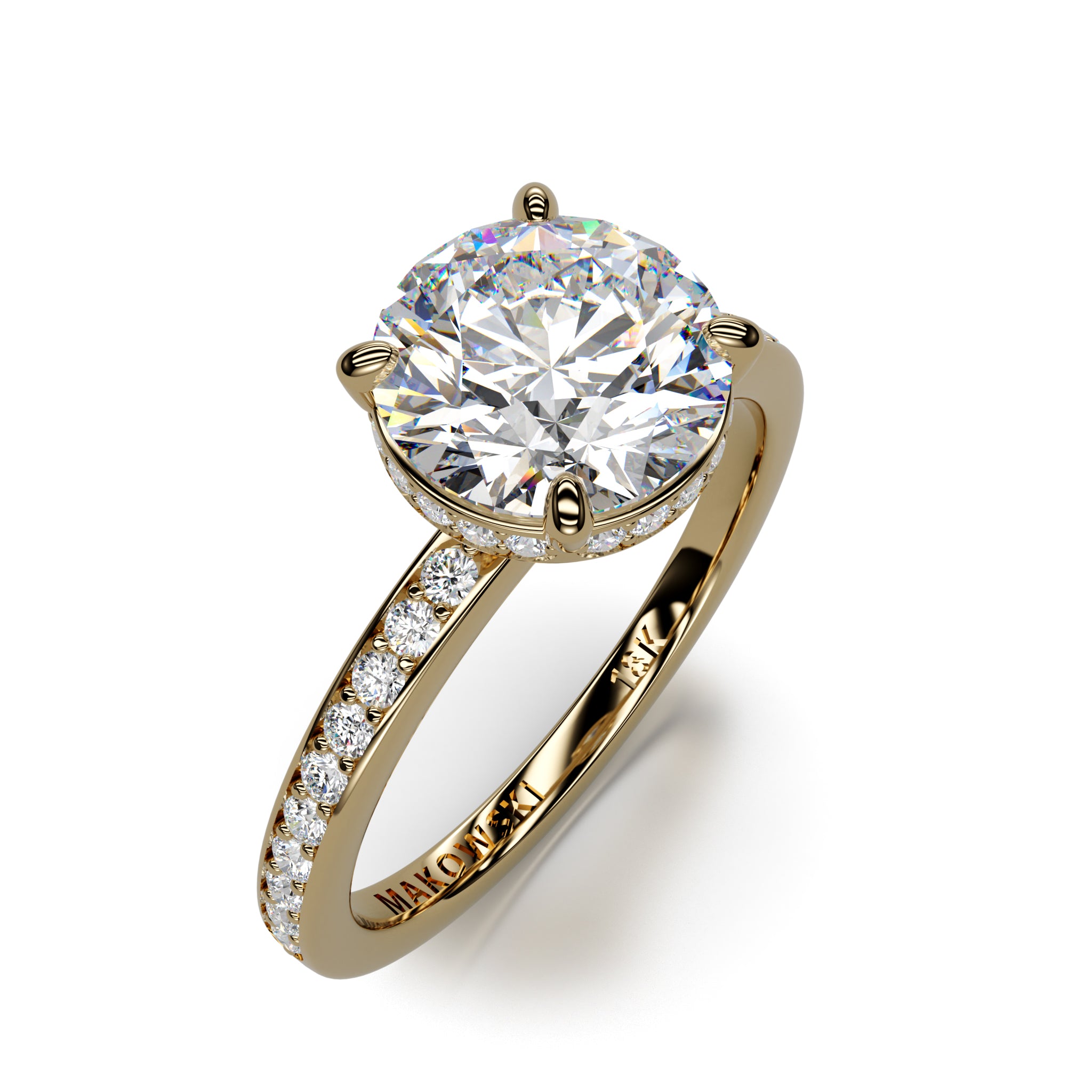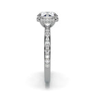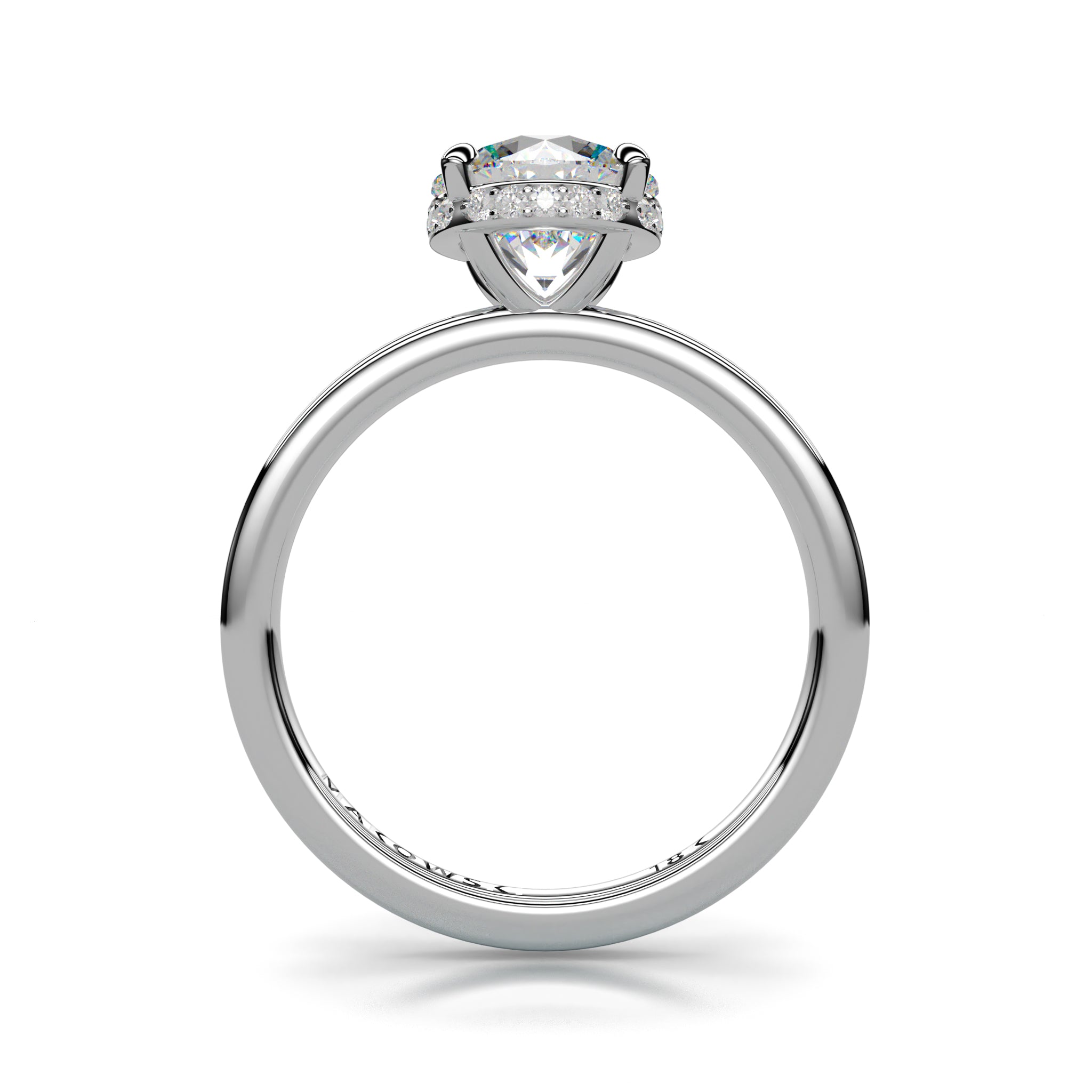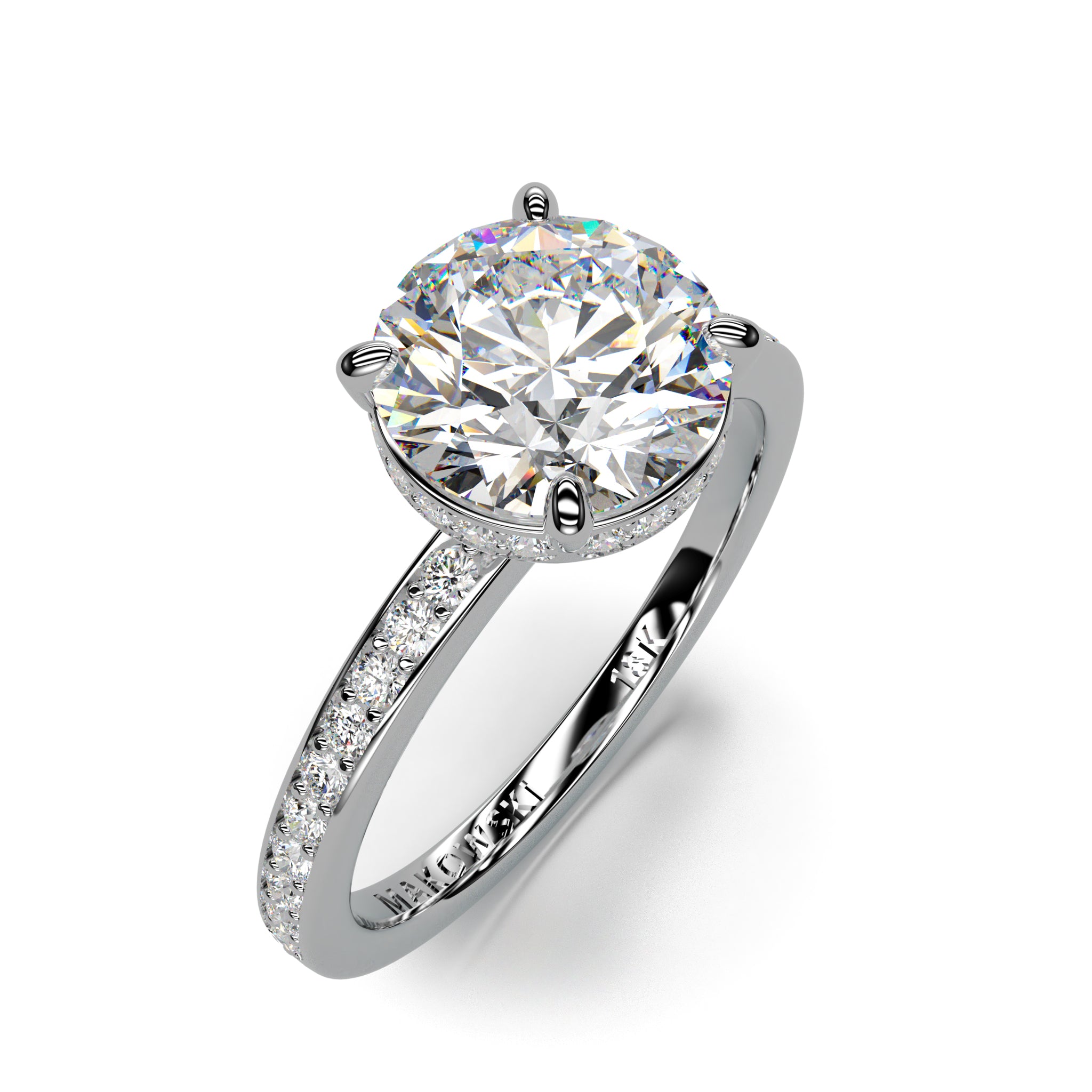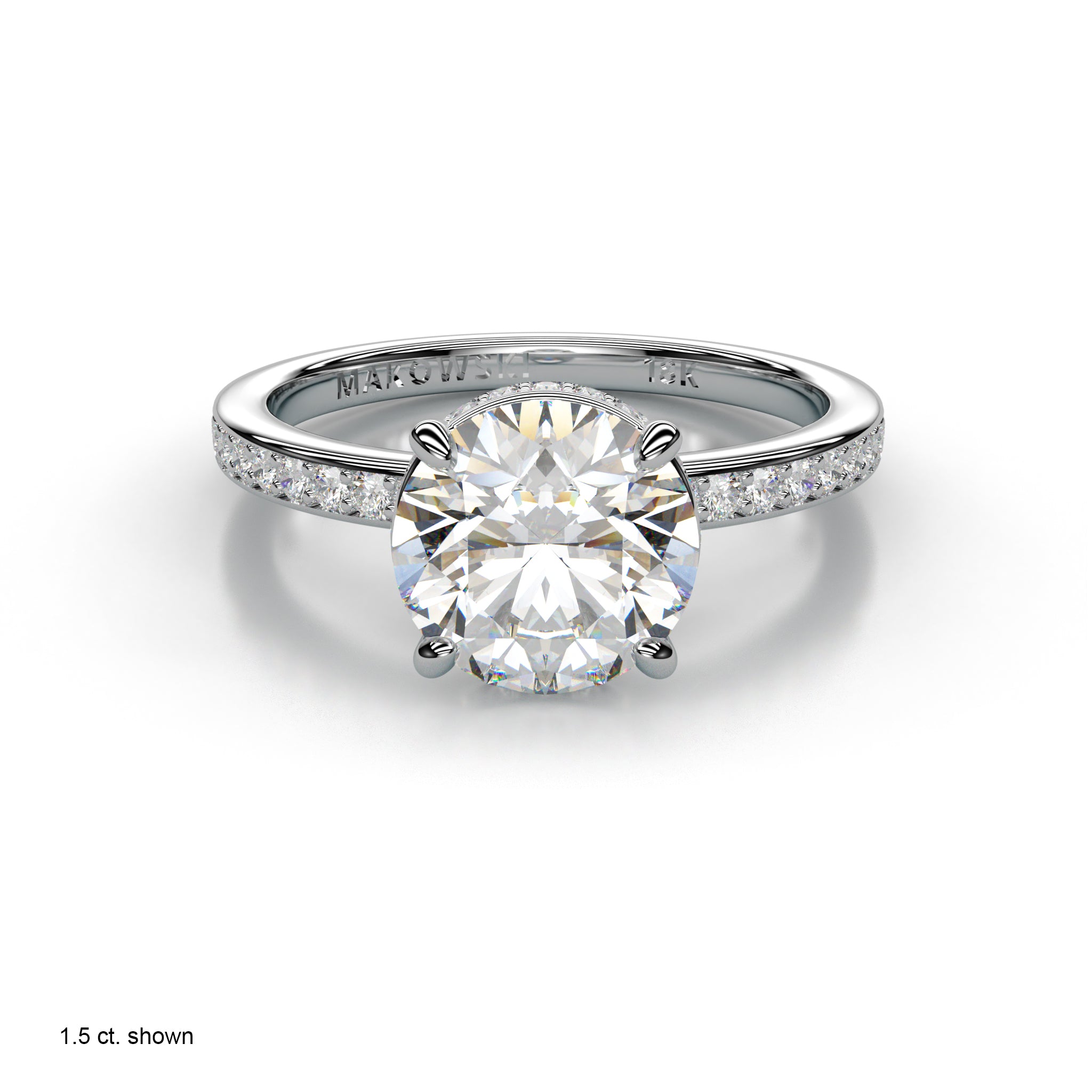 Round Brilliant Solitaire 4 Prong Setting with a Hidden Halo in Diamond Accented Band - "Hydra"