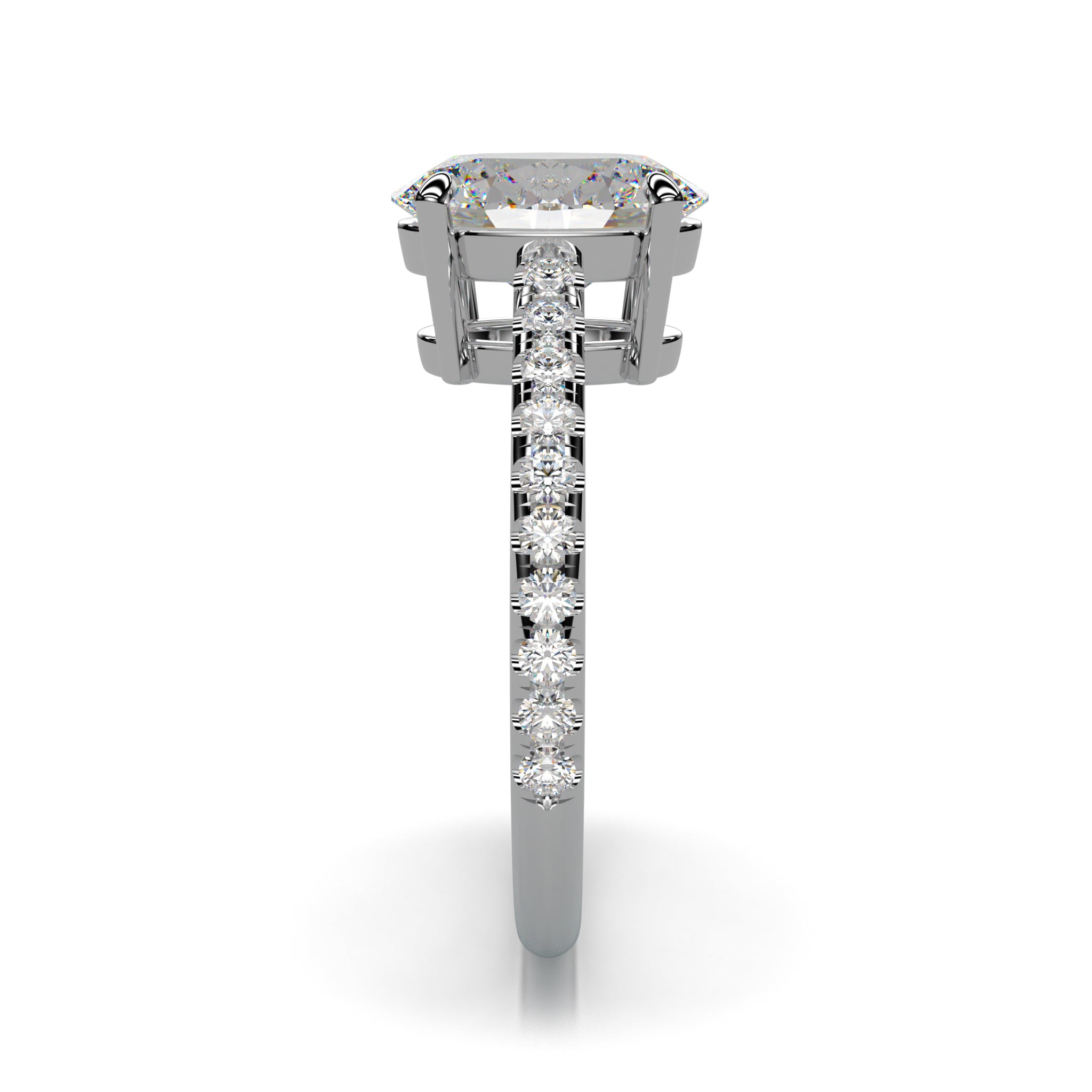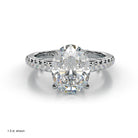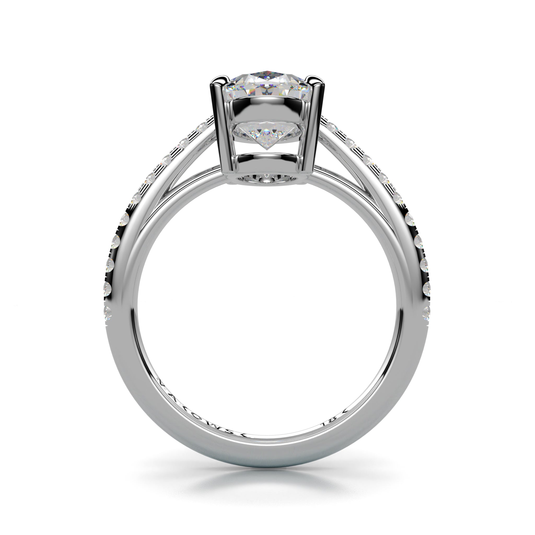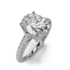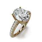 Oval Solitaire 4 Prong Setting in Cathedral Half Round Pave Set Diamond Accented Band - "Lipsi"