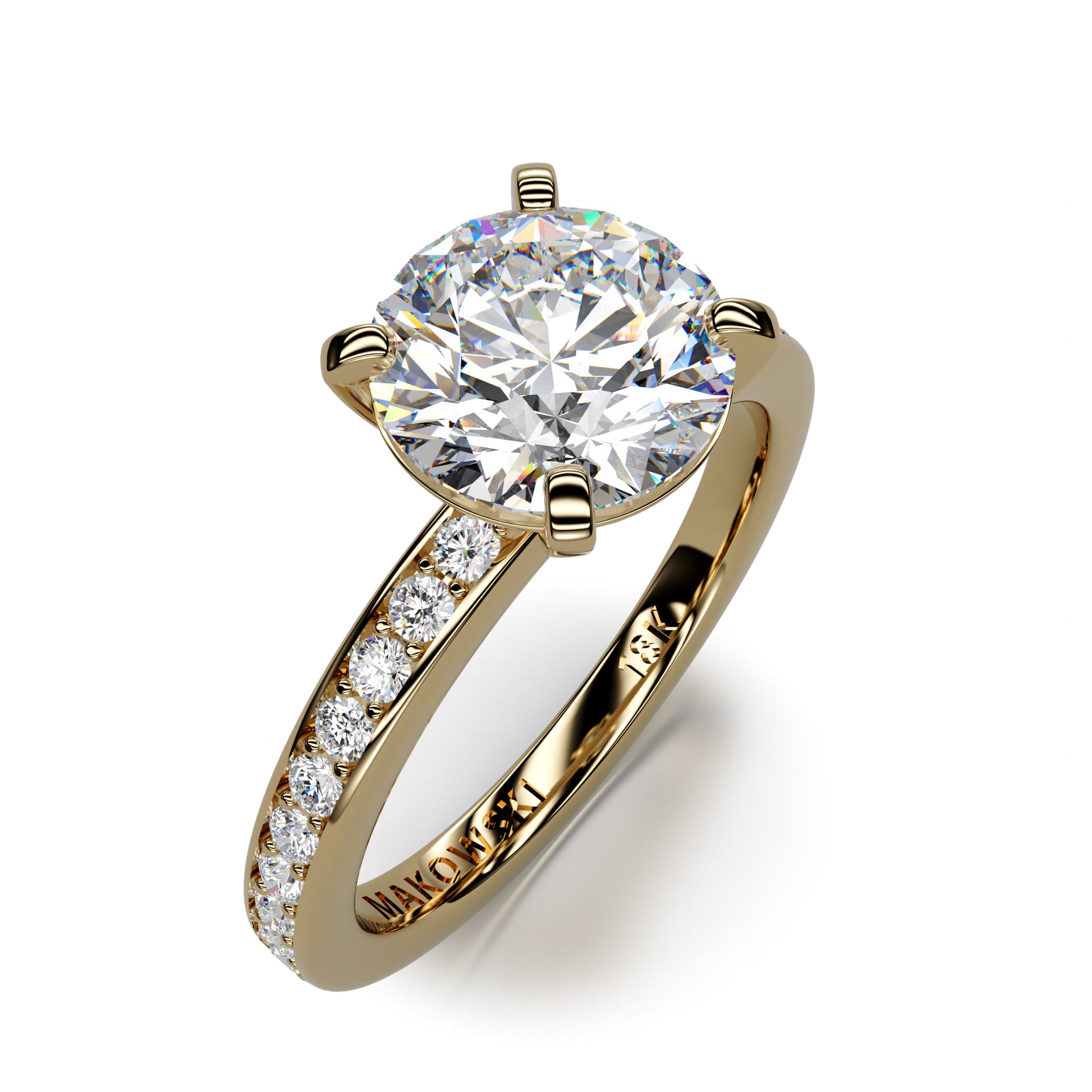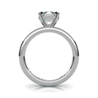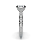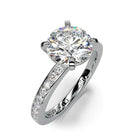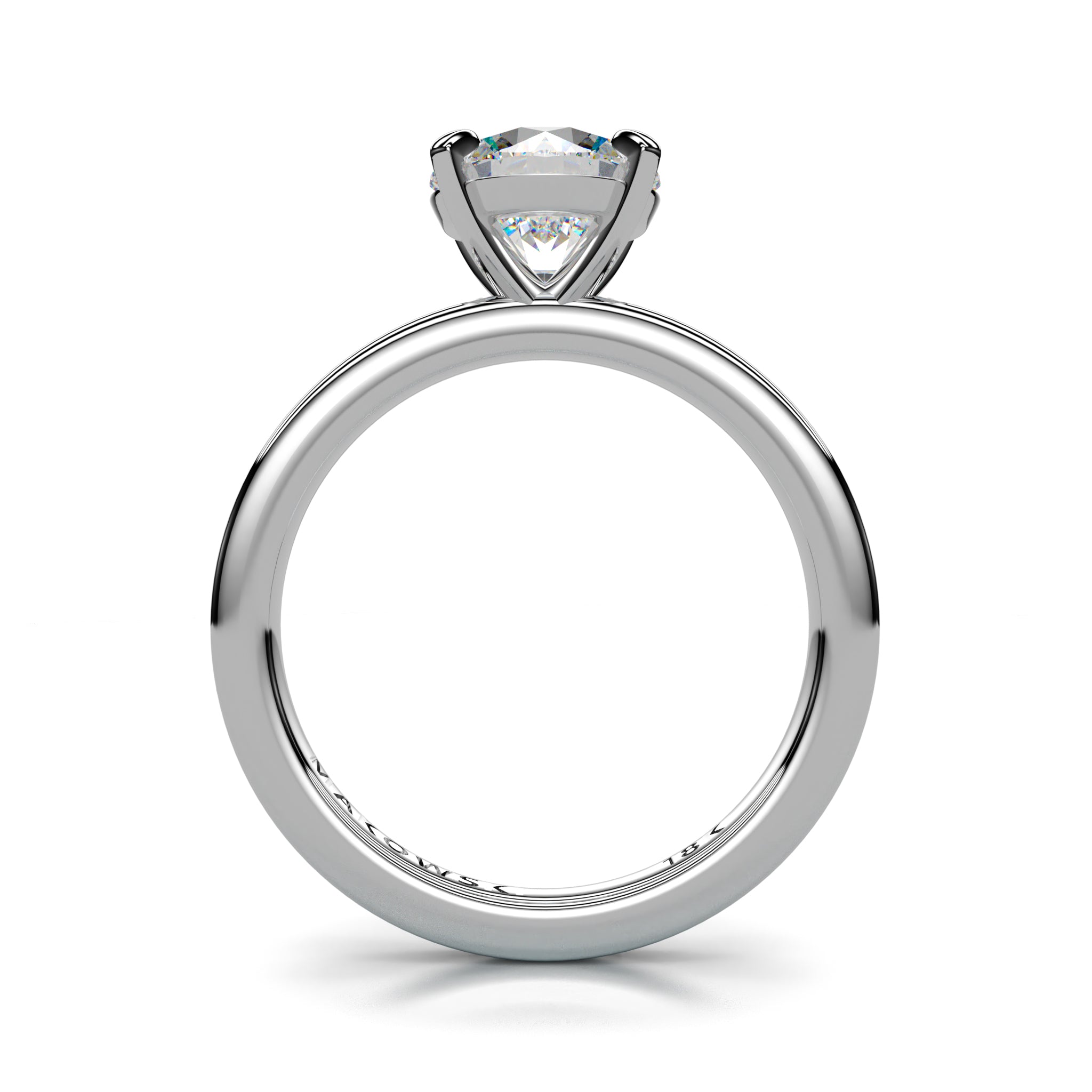 Round Brilliant Solitaire 4 Prong Basket Setting in Square Profile Diamond Accented Band - "Saria"