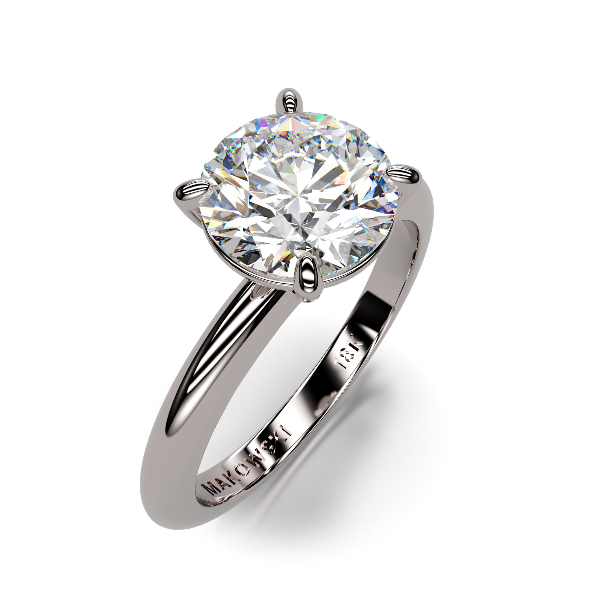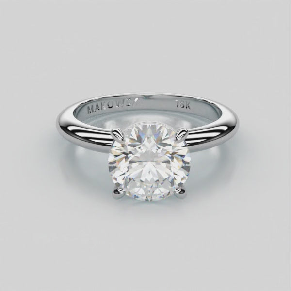 Round Brilliant Solitaire 4 Prong Basket Setting in Half Round Profile Band - "Moni"