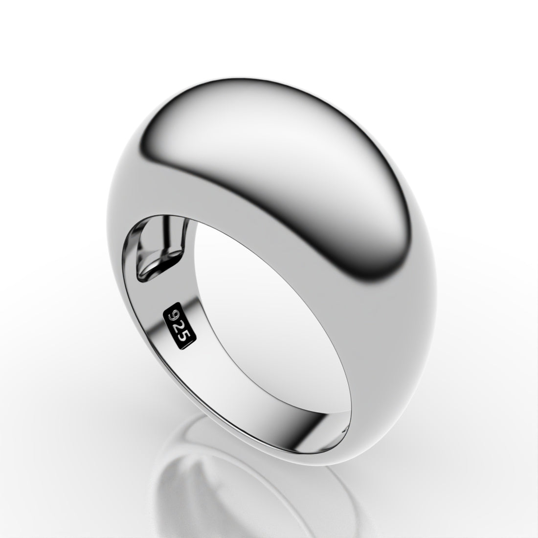 Bold, minimal, and unmistakably modern, the Super Dome Ring is T Makowski’s purest expression of fluid form. Sculpted in solid 925 sterling silver, the ring rises into a generous, rounded dome that feels like a smooth pool of liquid metal wrapped around the finger. Its clean silhouette is free of ornament, letting proportion, curve, and reflection do all the work.