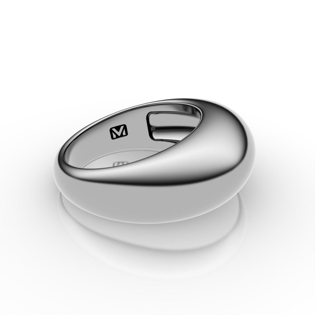 Inside the band, the discreet “925” purity mark and T Makowski “M” hallmark affirm the quality of the silver and the authenticity of the design. A modern classic with sculptural presence, the Super Dome Ring turns pure sterling silver into a quiet showstopper - refined, versatile, and distinctly Makowski.