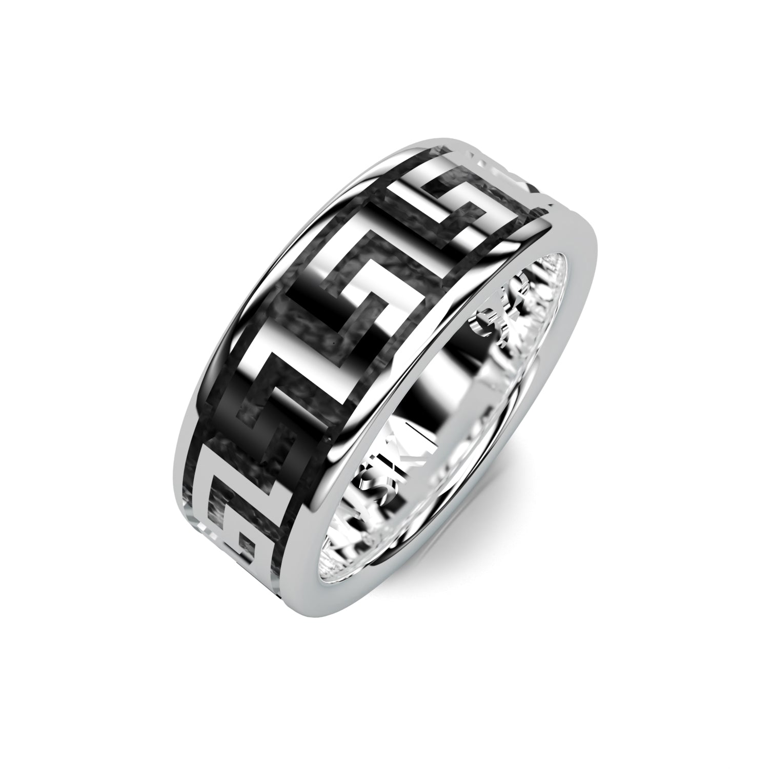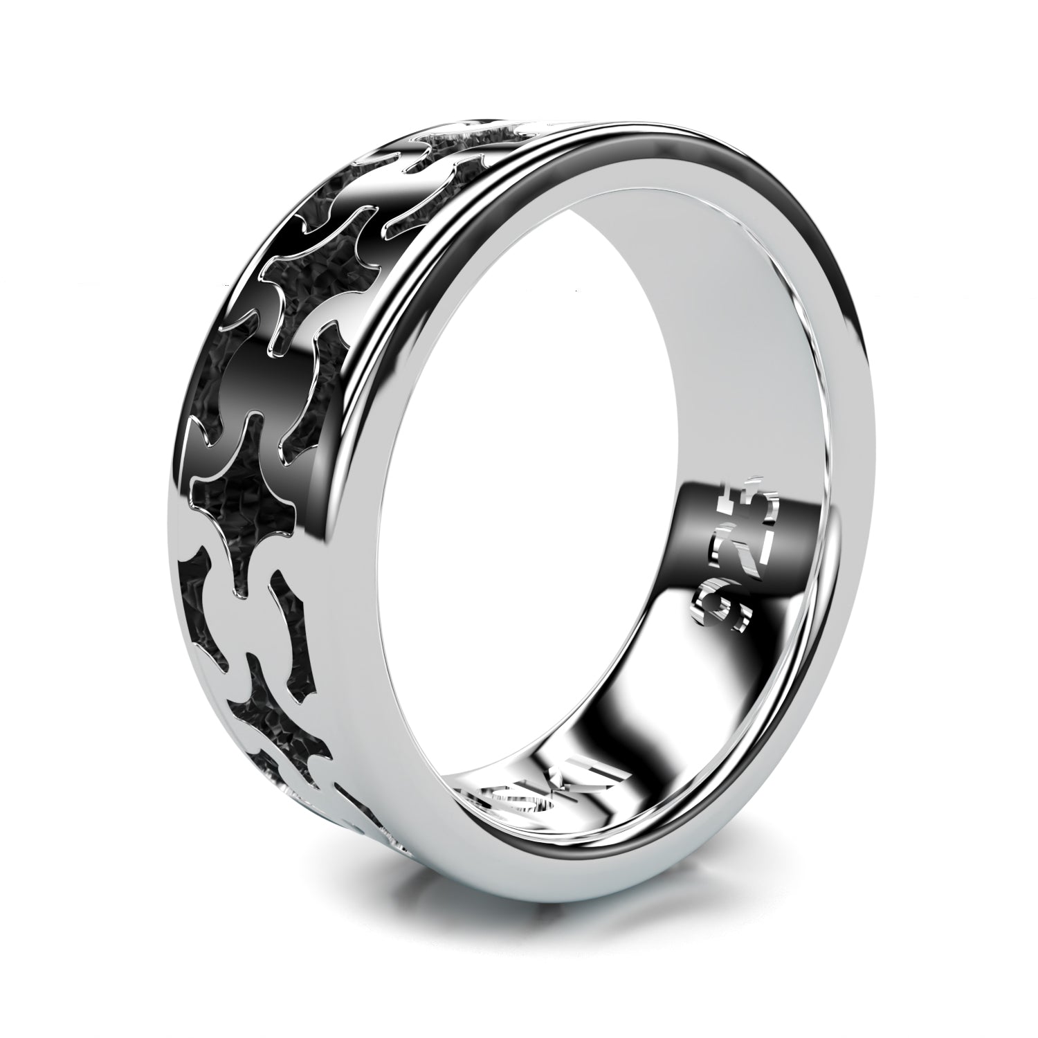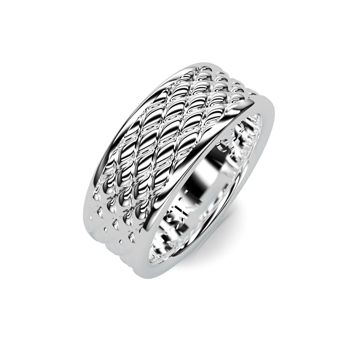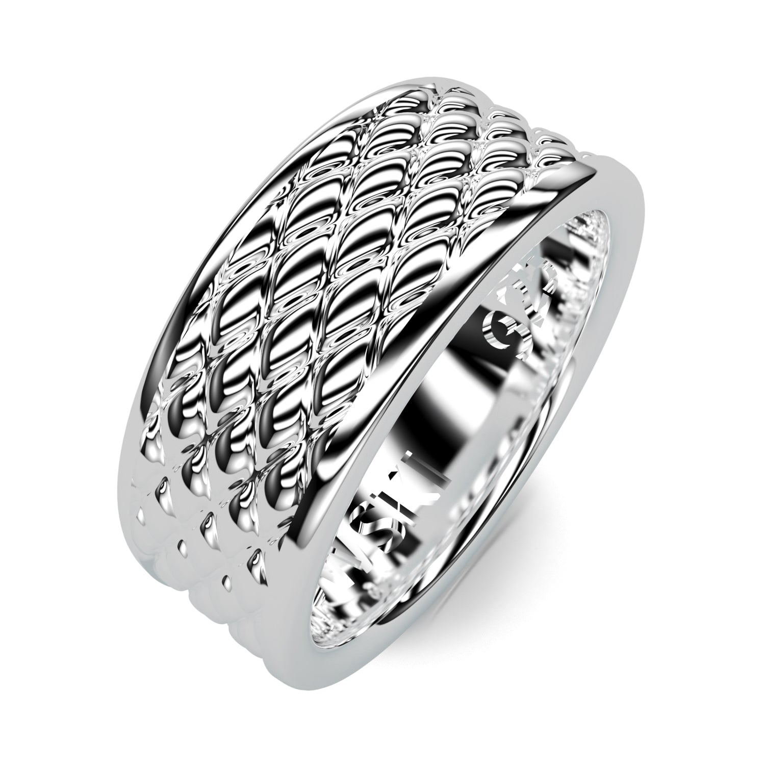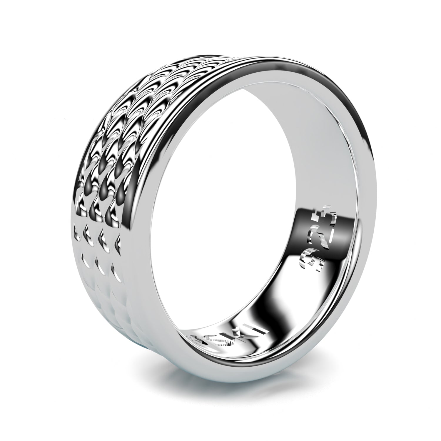 Sterling Silver Men's Ring with Embossed Leather Metal Design