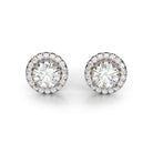 These beautiful Halo stud earrings are custom made to order and set in a classic four prong basket setting of 18K gold or platinum. Surrounded by a breathtaking halo of French Pave set accent diamonds, these incredible pair of stud earrings go through the highest quality control standards in our North American workshop. The matched pair of round brilliant diamonds are GIA certified and come with deluxe Protektor® backings.
