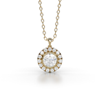 Round Diamond Pendant with French Set Halo Accent Diamonds in 18K Gold