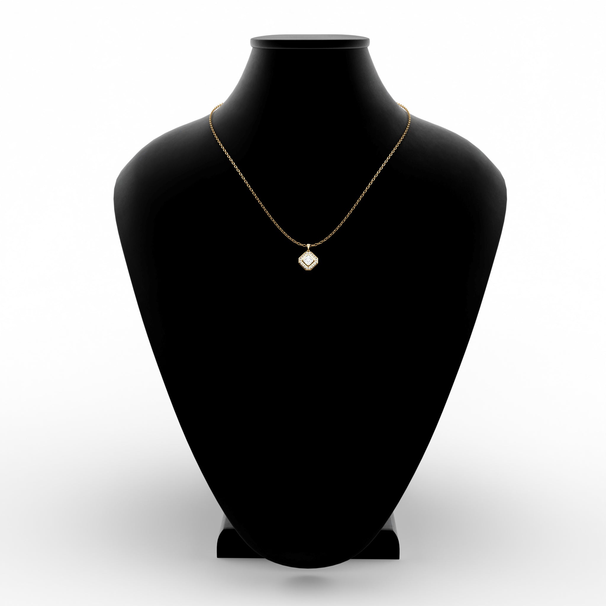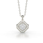 Square Diamond Pendant Halo with Shared Prong Accent Diamonds in 18K Gold
