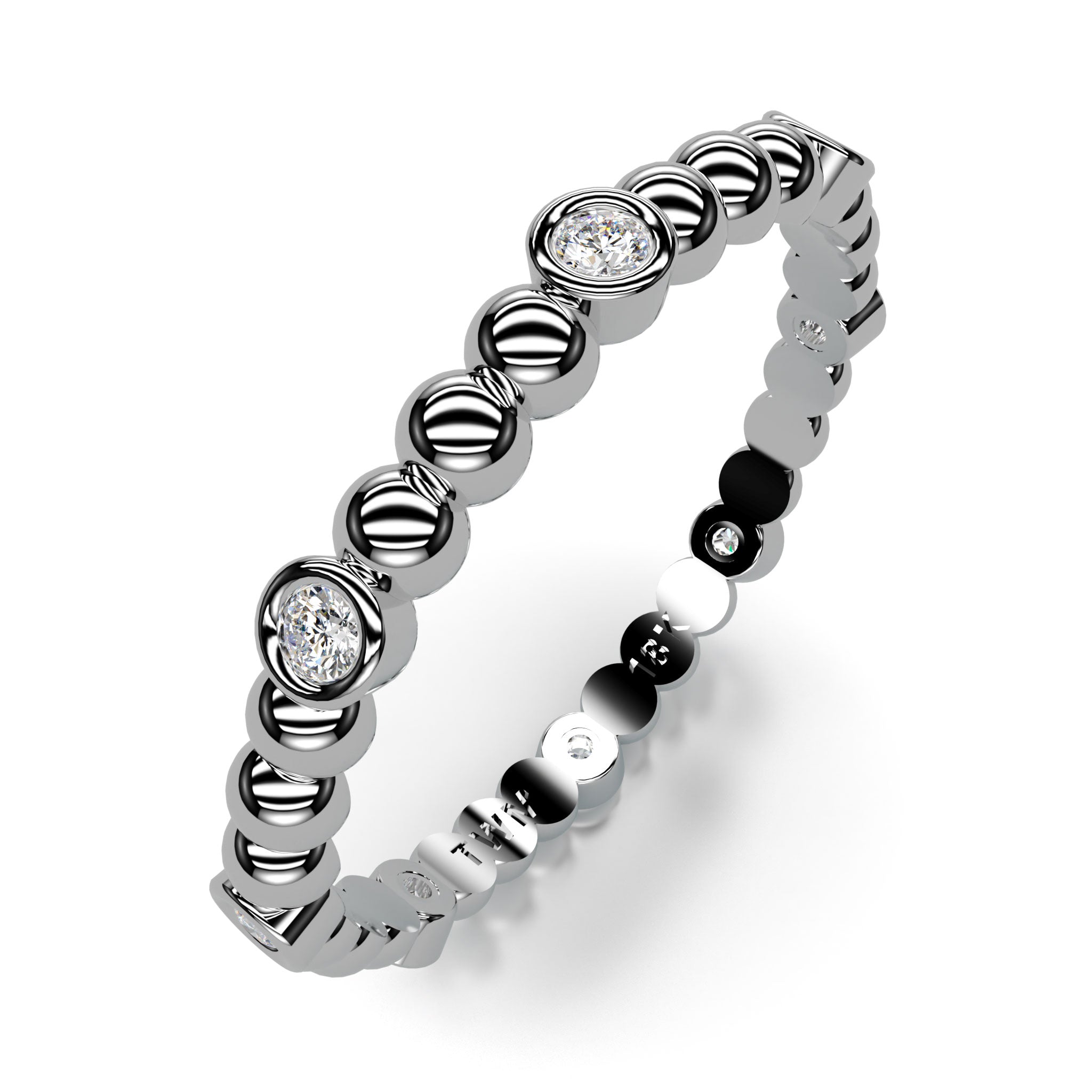 This beautiful stackable 18K diamond ring is adored with a spherical design and round brilliant accent diamonds. Made to be worn with other stackable rings from the collection, this exquisitely hand crafted ring will provide a lifetime of pleasure and compliment all the other stackable rings and engagement from our collection.