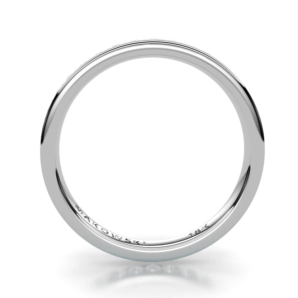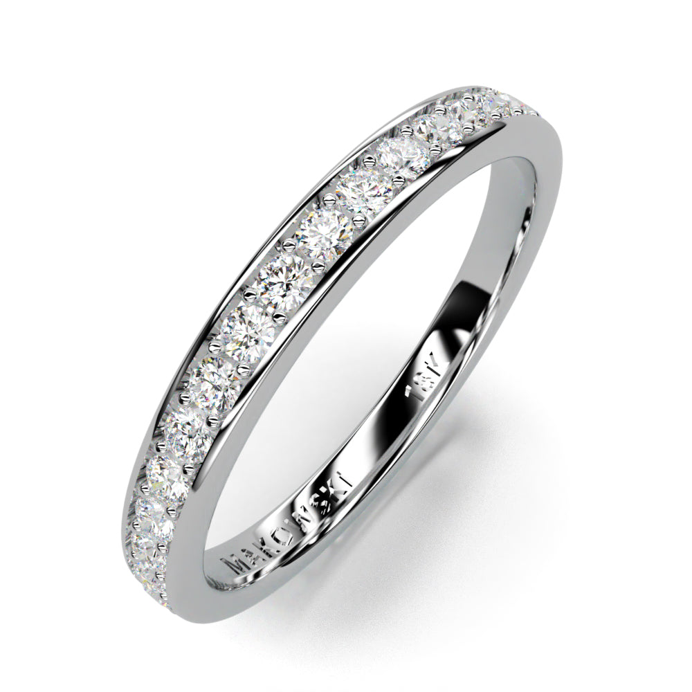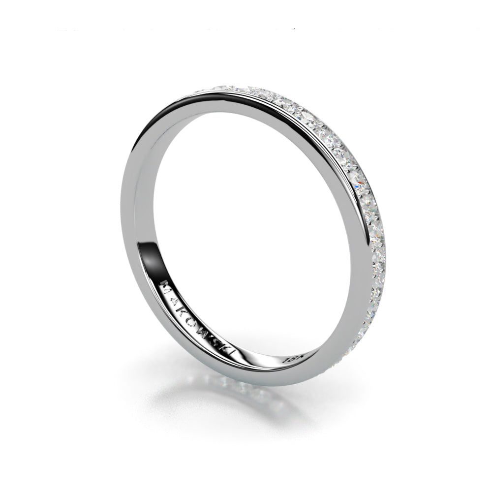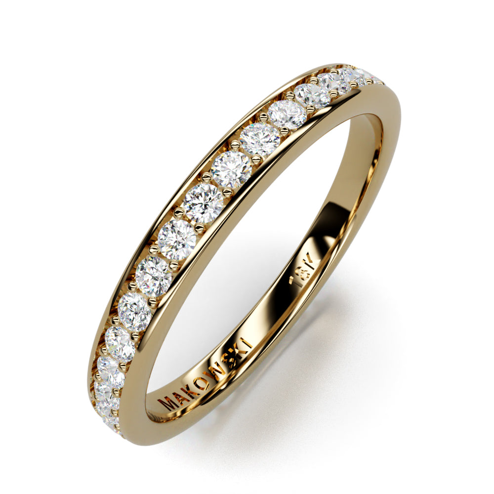 This beautiful 1.5mm Gem Eternity Band in 18K gold has Shared Prong Set lab grown diamonds. Lab grown diamonds are the sustainable choice and 100% authentic. Made to be worn with other stackable rings from the collection, this exquisitely hand crafted ring will provide a lifetime of pleasure and compliment all the other stackable and engagement rings from our collection.