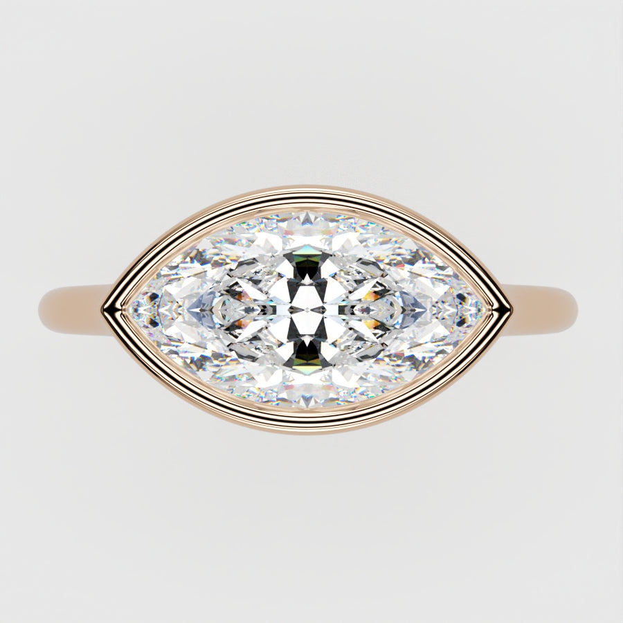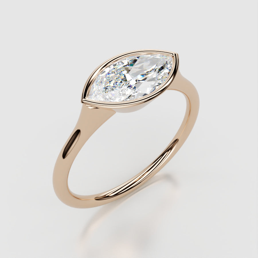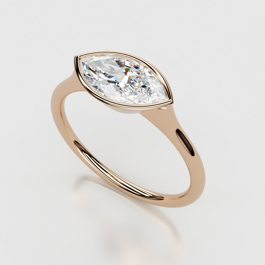 Marquis Cut Solitaire Bezel Setting in 18K Yellow Gold Minimalist Band