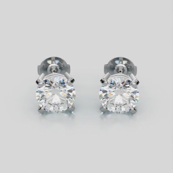 These beautiful stud earrings are custom made to order and set in a classic four prong basket setting. The matched pair of round brilliant diamonds are GIA certified and come with deluxe Protektor® backings.