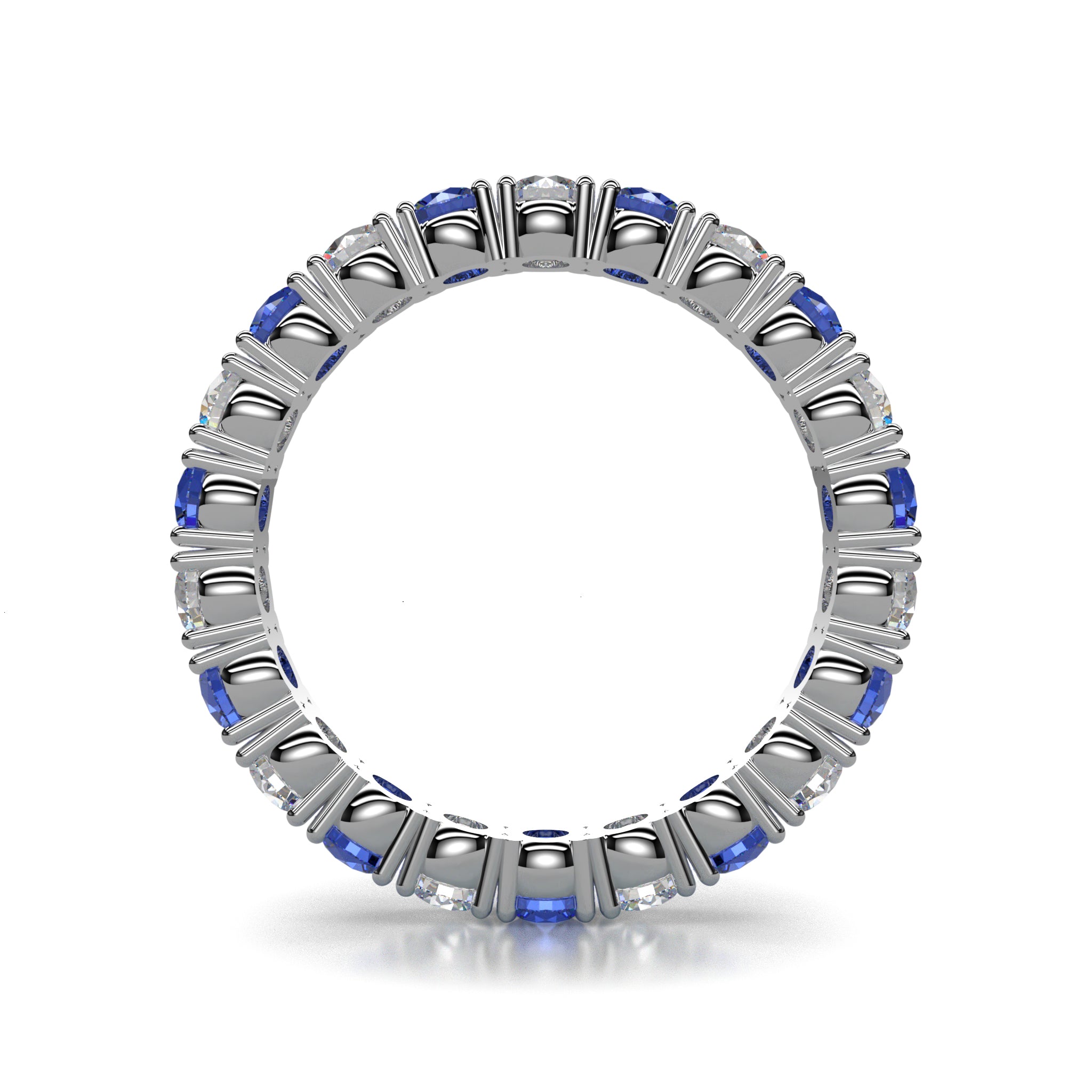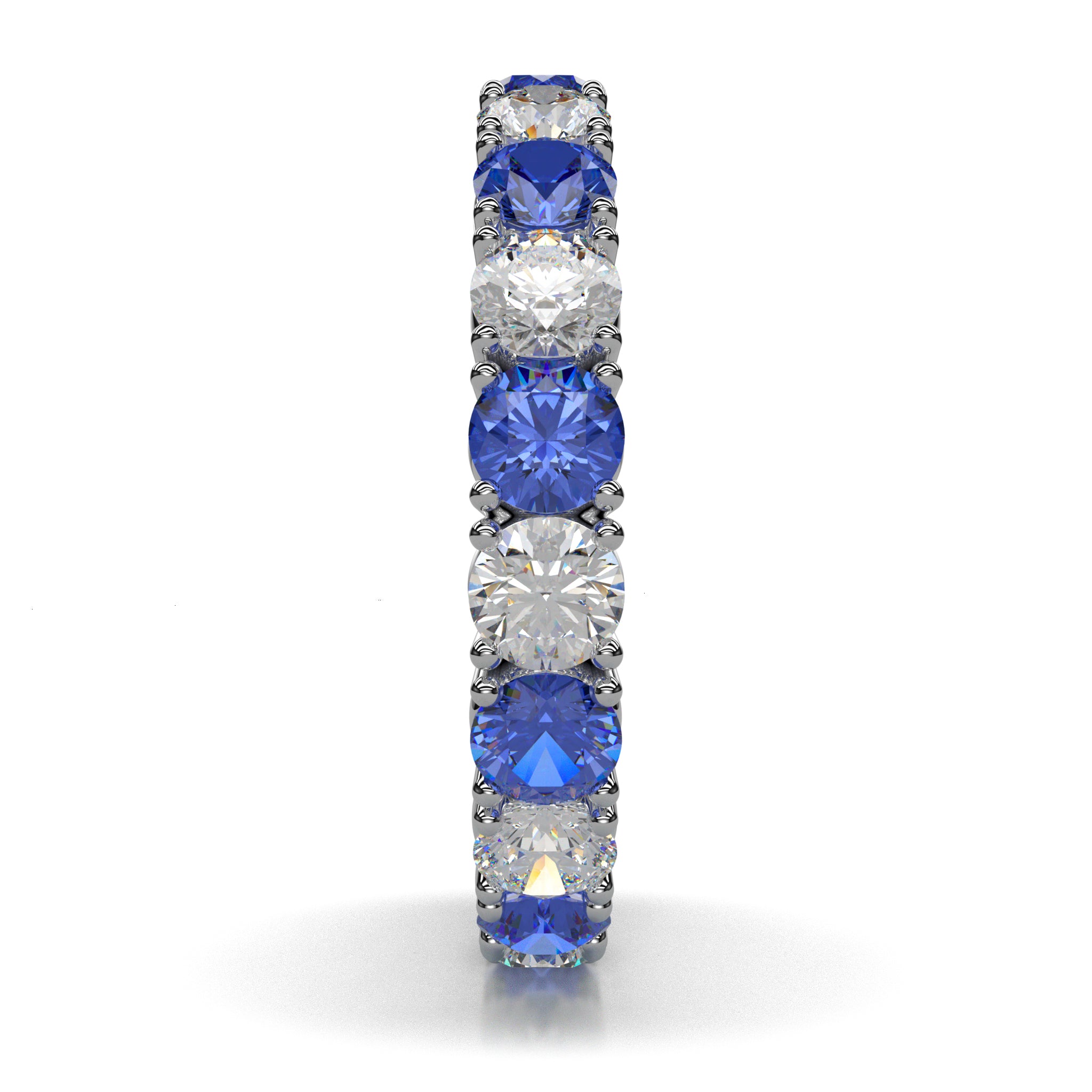 Diamond & Sapphire Eternity Band in 18K Gold with 3mm Round Brilliant Gems