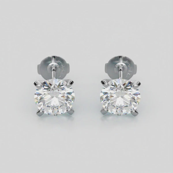 These beautiful stud earrings are custom made to order and set in a classic four prong Martini high setting. The matched pair of round brilliant diamonds are GIA certified and come with deluxe Protektor® backings.