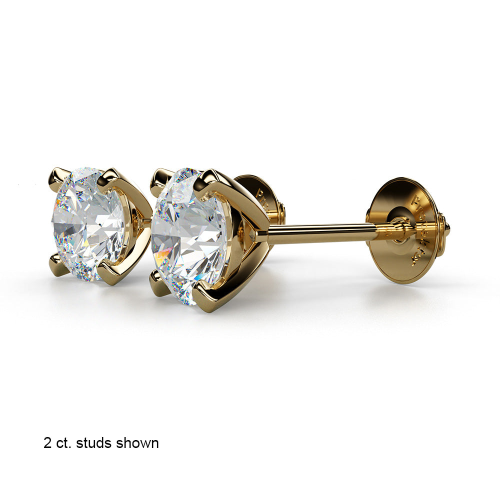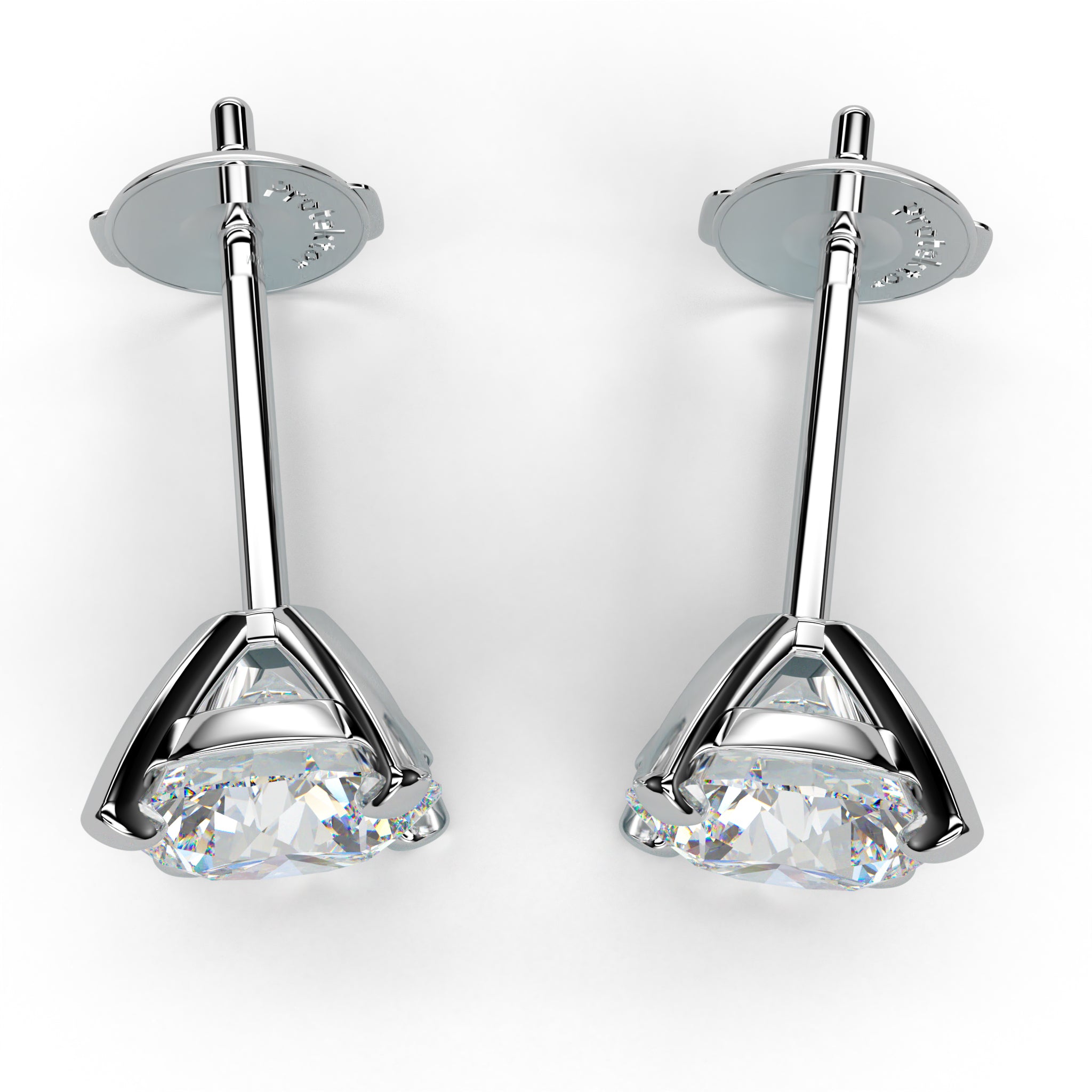 These beautiful stud earrings are custom made to order and set in a classic four prong Martini setting. The matched pair of round brilliant diamonds are certified and come with deluxe Protektor® backings or standard Push Back backings.