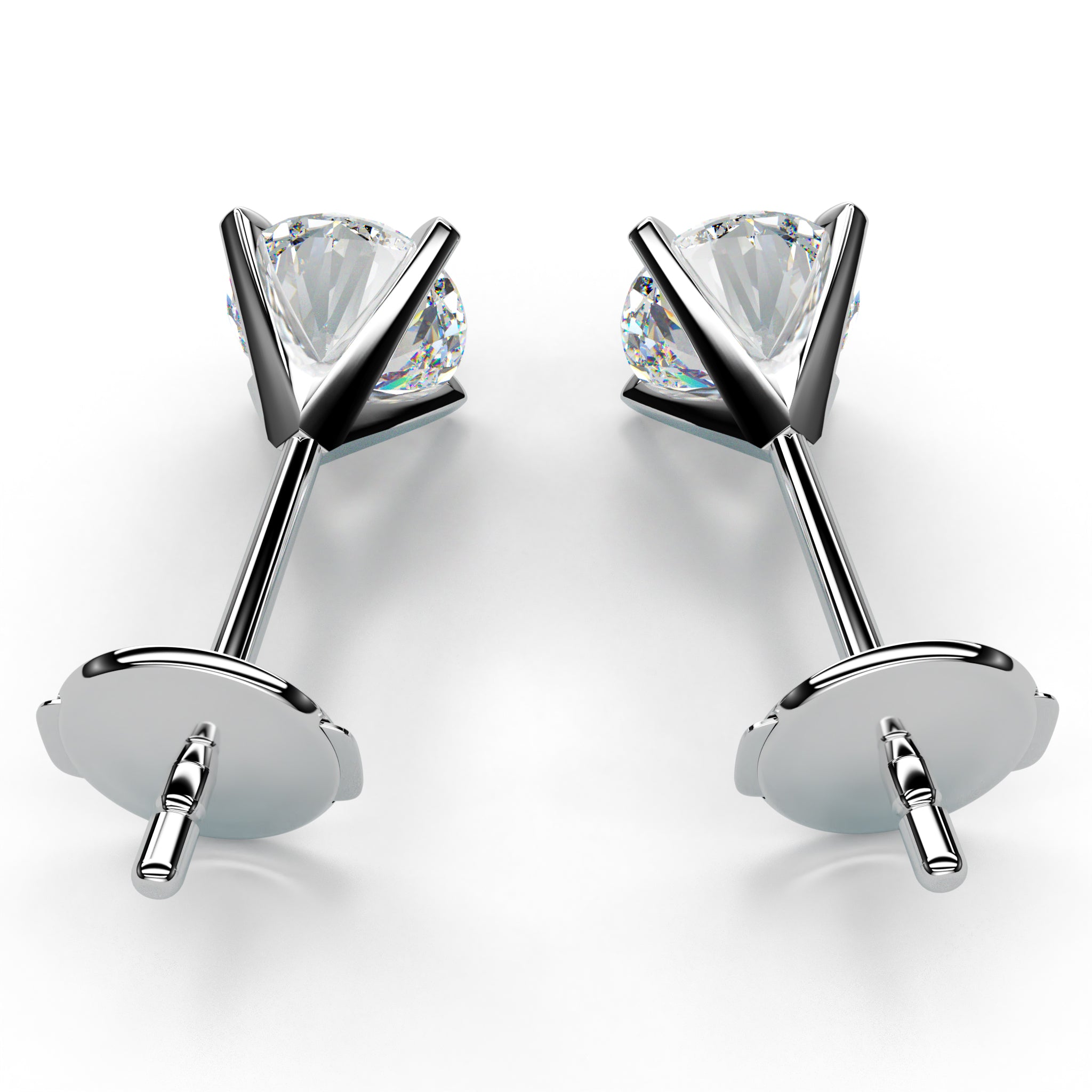 These beautiful stud earrings are custom made to order and set in a classic four prong Martini setting. The matched pair of round brilliant diamonds are certified and come with deluxe Protektor® backings or standard Push Back backings.