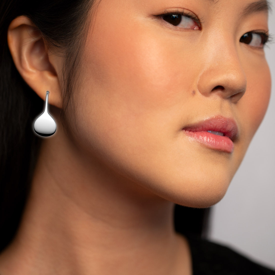 Inspired by the flow of water, these timeless one piece earrings are the height of modern design combined with classic beauty. They can be worn with a black cocktail dress or your favorite pair of old jeans, they are perfect for any occasion. The innovative design is unique in it's one piece fabrication.