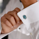Men's Sterling Silver Cufflinks with Enamel over Hammered Surface Metal Design