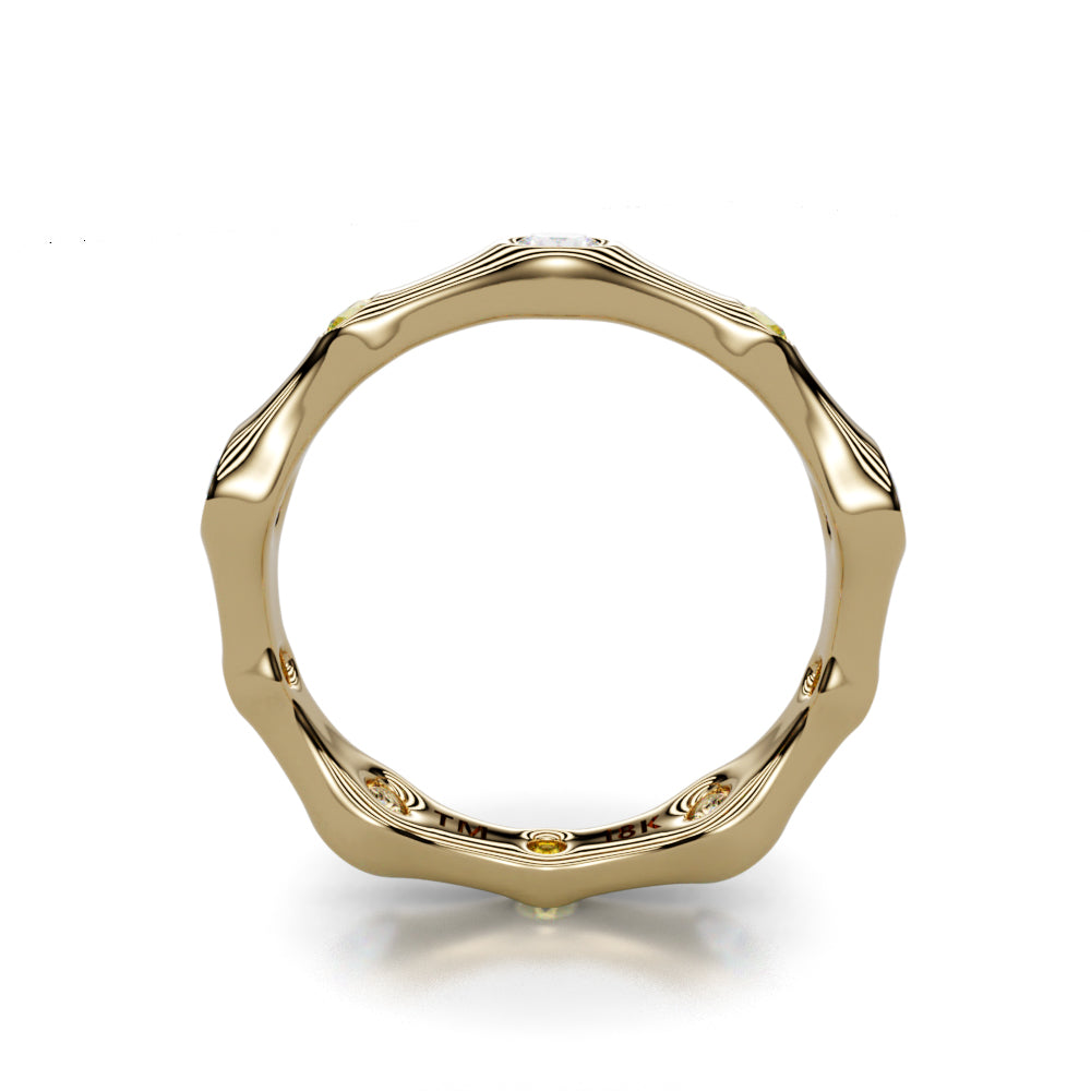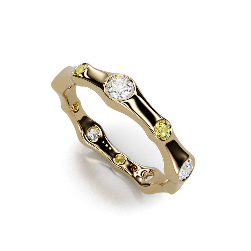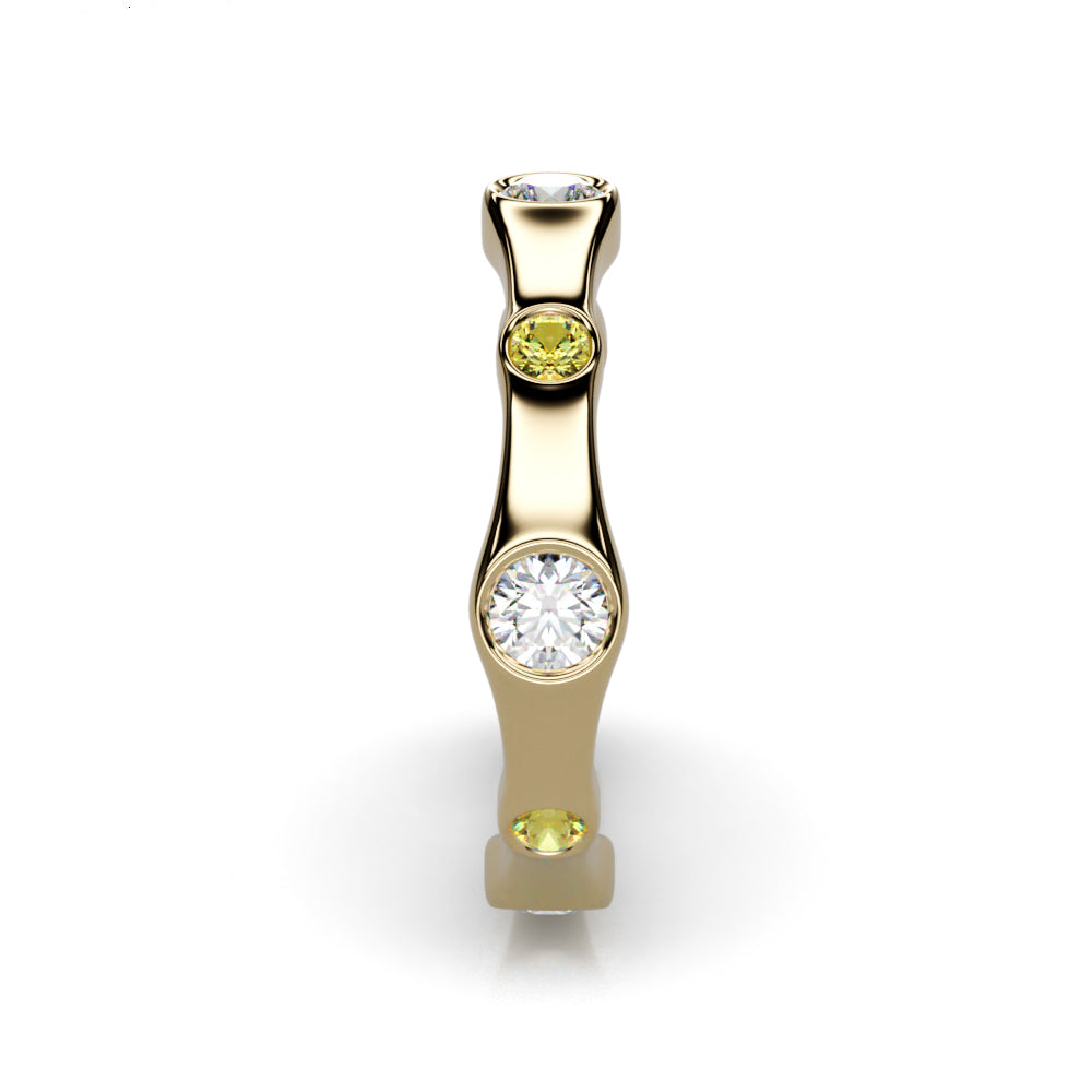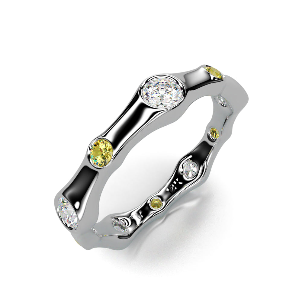 This beautiful stackable 18K diamond ring is made of 5x3mm Round Brilliant accent diamonds and 5x2mm Yellow Sapphire accent gems. Made to be worn with other stackable rings from the collection, this exquisitely hand crafted ring will provide a lifetime of pleasure.