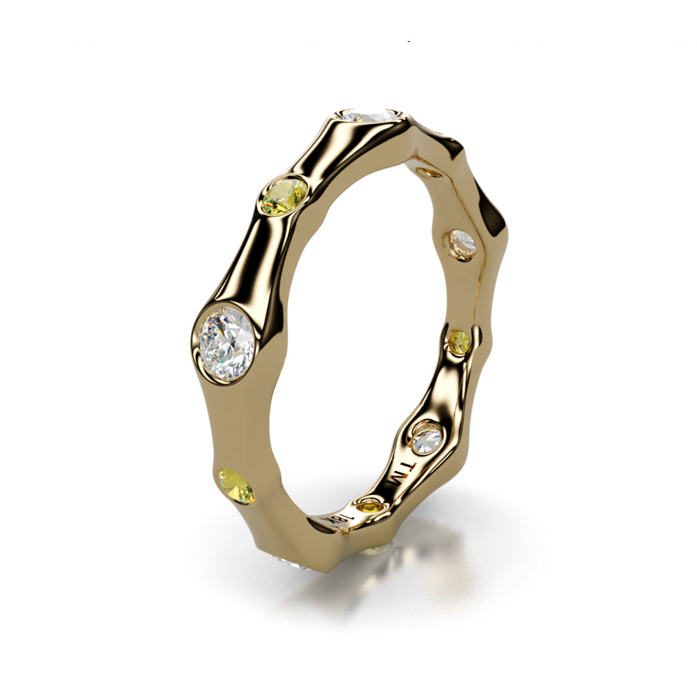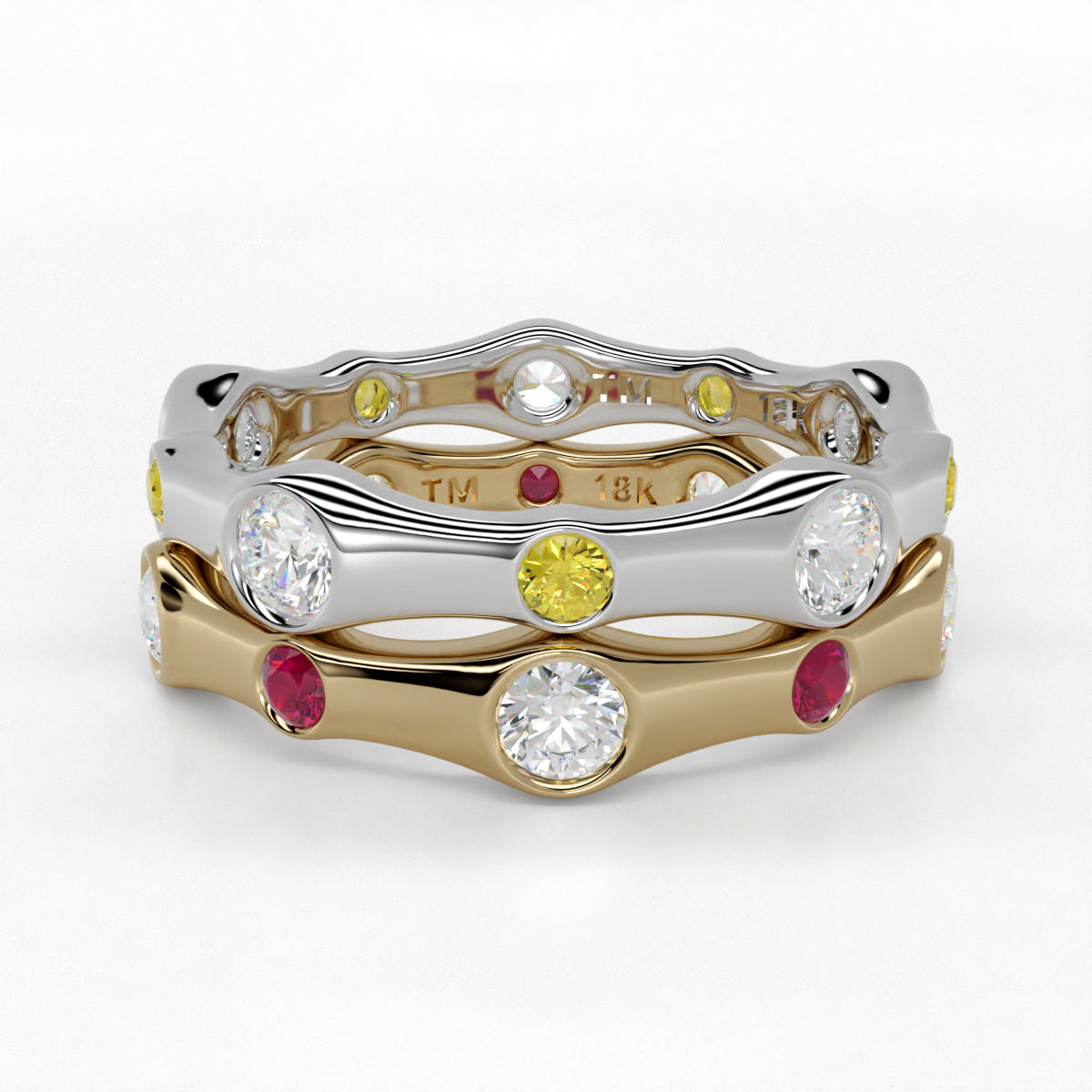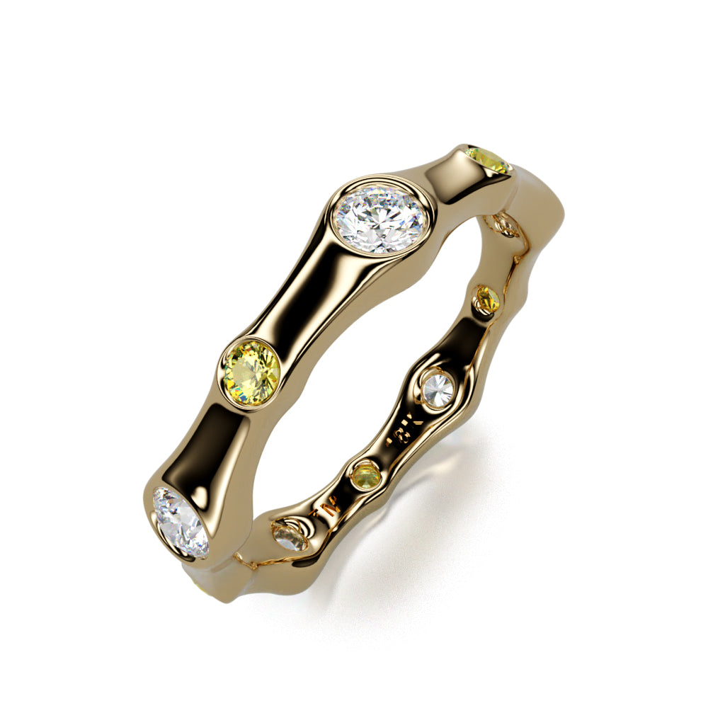 This beautiful stackable 18K diamond ring is made of 5x3mm Round Brilliant accent diamonds and 5x2mm Yellow Sapphire accent gems. Made to be worn with other stackable rings from the collection, this exquisitely hand crafted ring will provide a lifetime of pleasure.